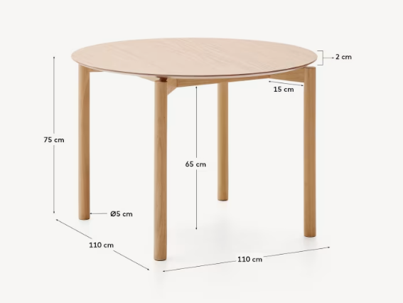 Blat stołu wykonany jest z forniru jesionowego w naturalnym wykończeniu, co podkreśla jego subtelny urok i trwałość. Nogi z litego drewna kauczukowego również wykończone w naturalnym odcieniu zapewniają stabilność i solidność konstrukcji. Dodatkowym atutem są regulowane stopki, które pozwalają na idealne wypoziomowanie stołu nawet na nierównej podłodze.