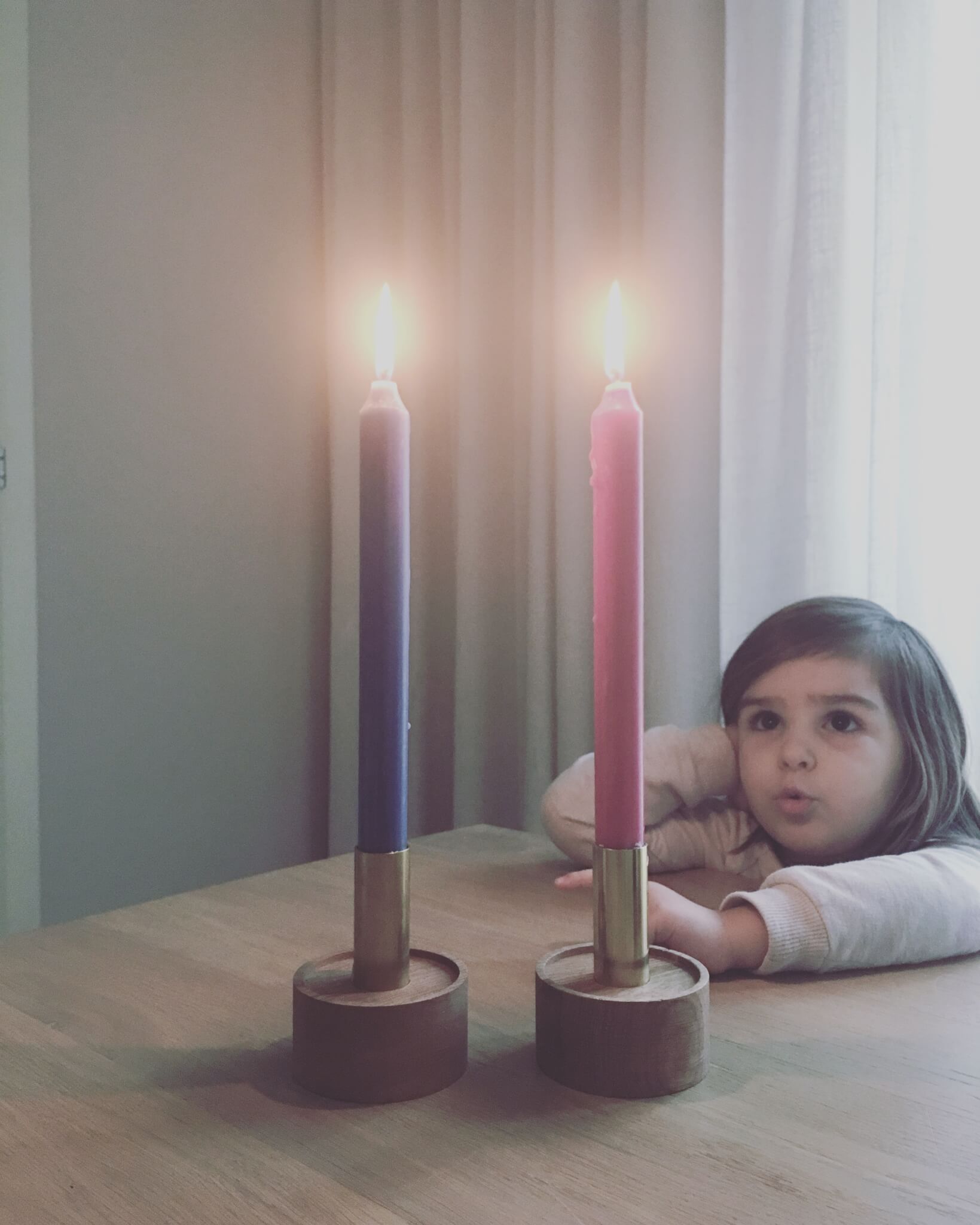 Świecznik ENLIGHTENMENT dąb z mosiądzem