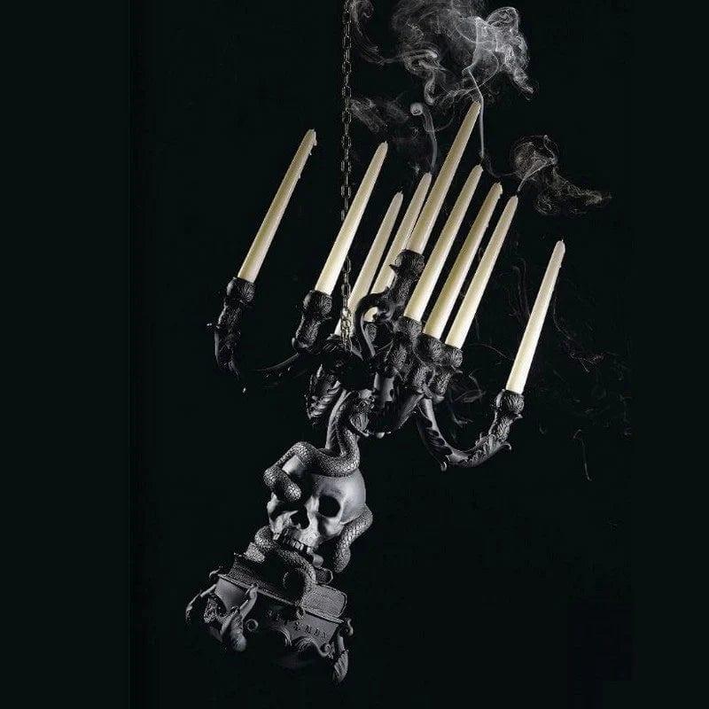 Świecznik Giant Burlesque Skull zapewnia eklektyczny styl na niespodziewaną kolację przy świecach. Stanowi propozycję łączącą awangardowe podejście z groteską barokową.