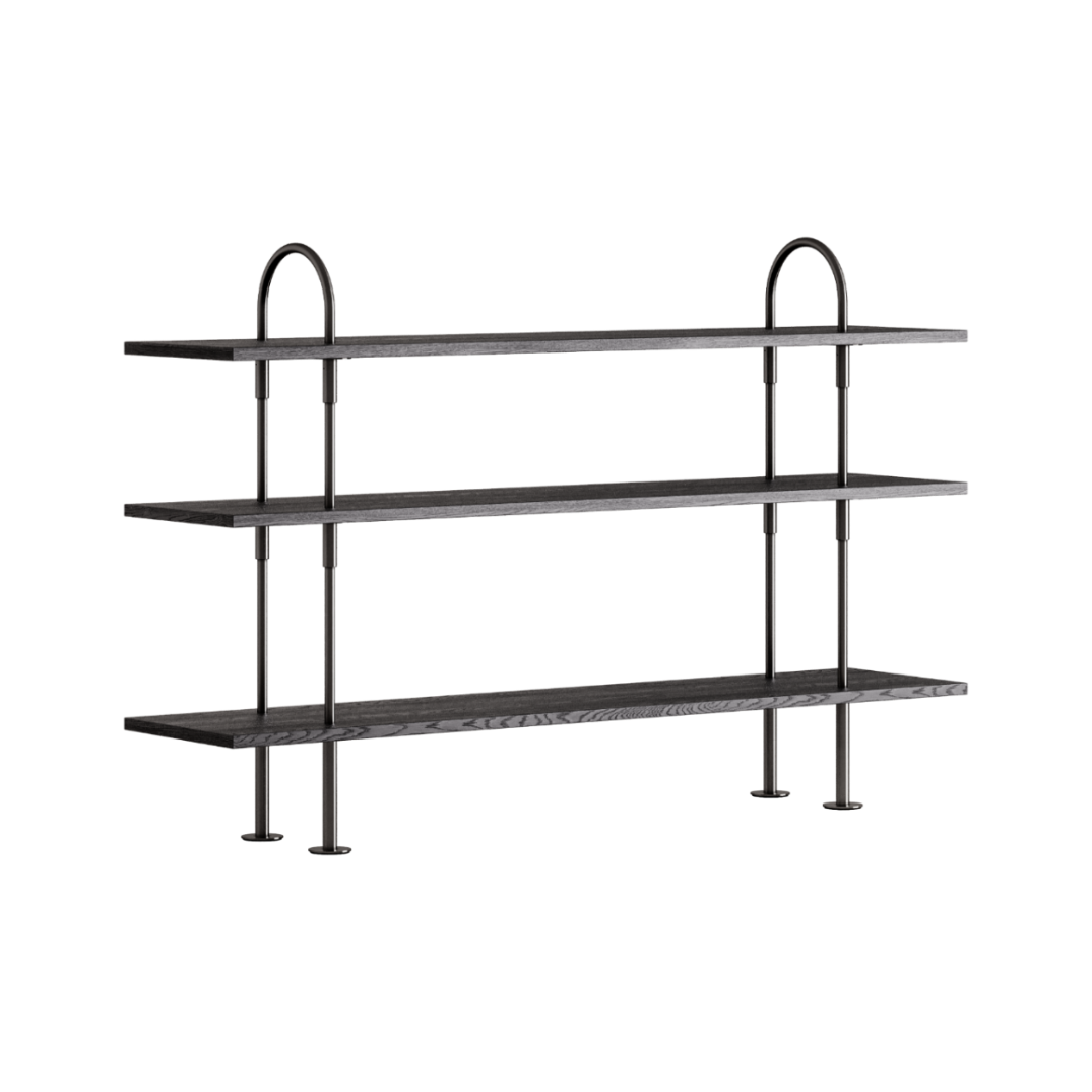 Regał KEEN ciemne drewno jesionowe z czarną mosiężną ramą
