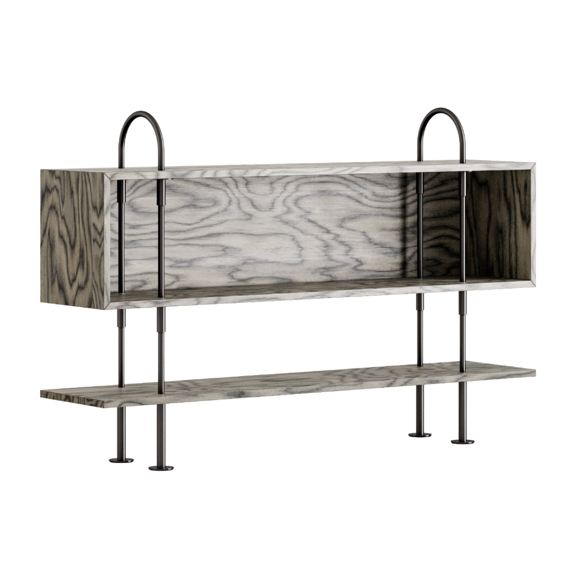 Regał KEEN BOX szare drewno z satynową stalową ramą