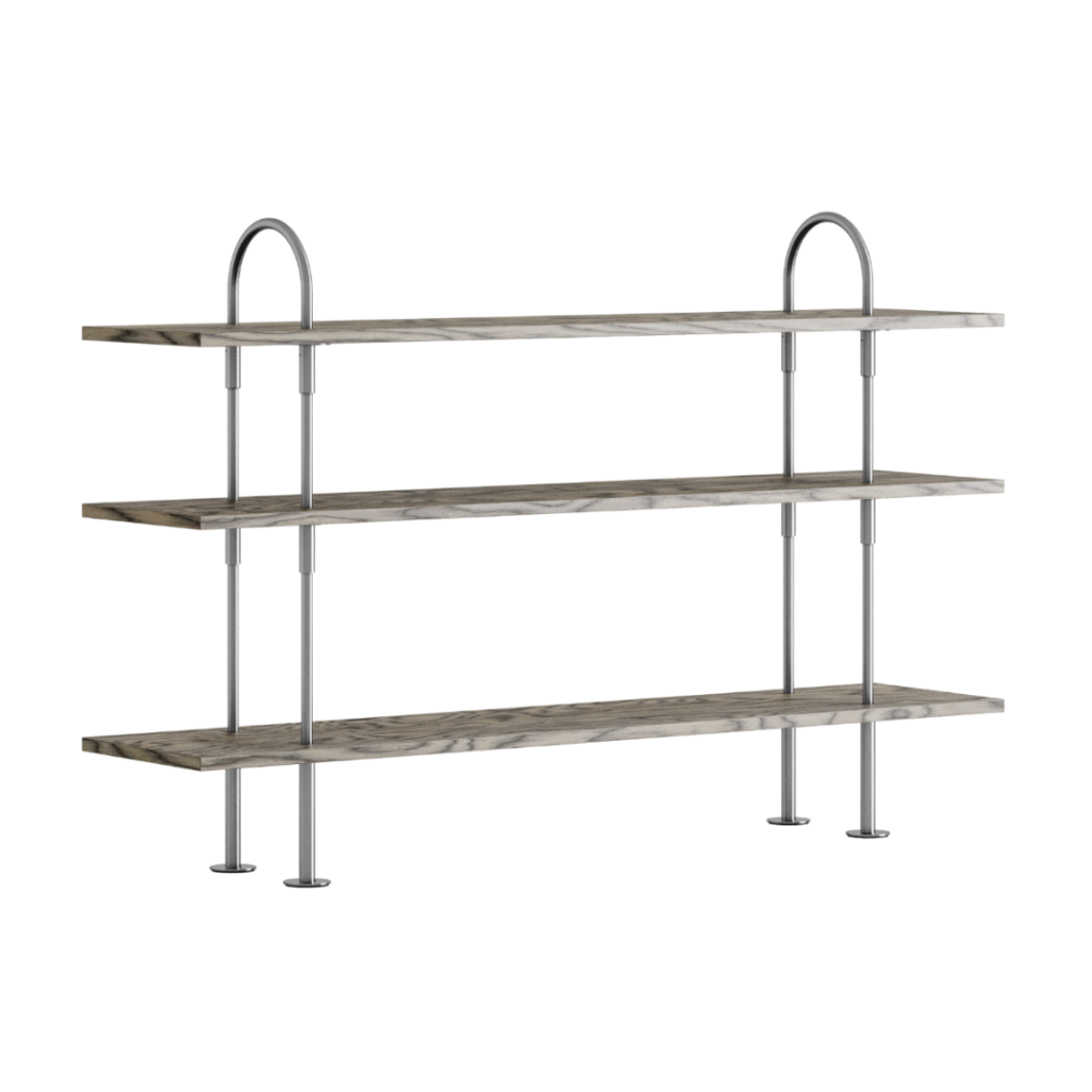 Regał KEEN szare drewno z satynową stalową ramą