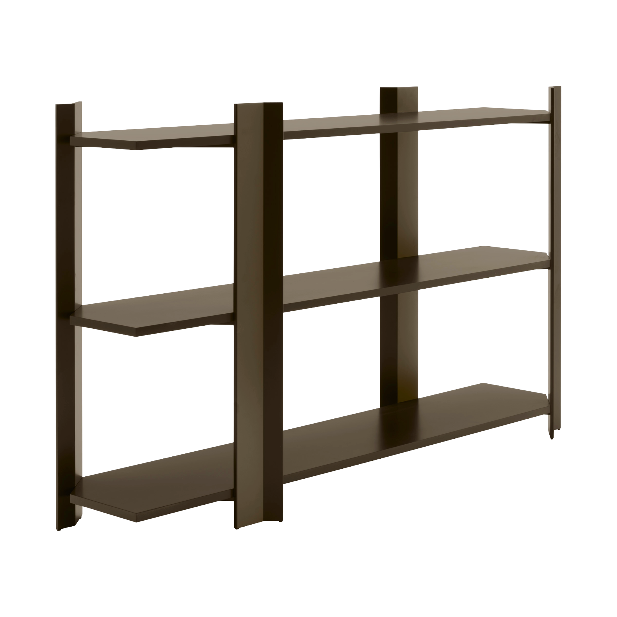 Regał KEEN ciemne drewno jesionowe z satynową stalową ramą