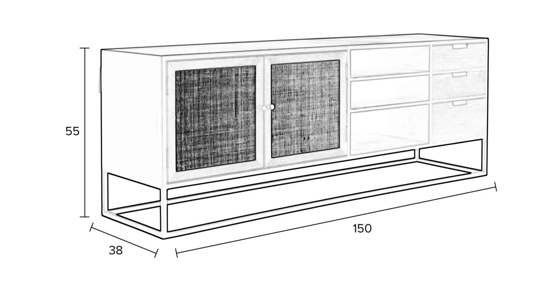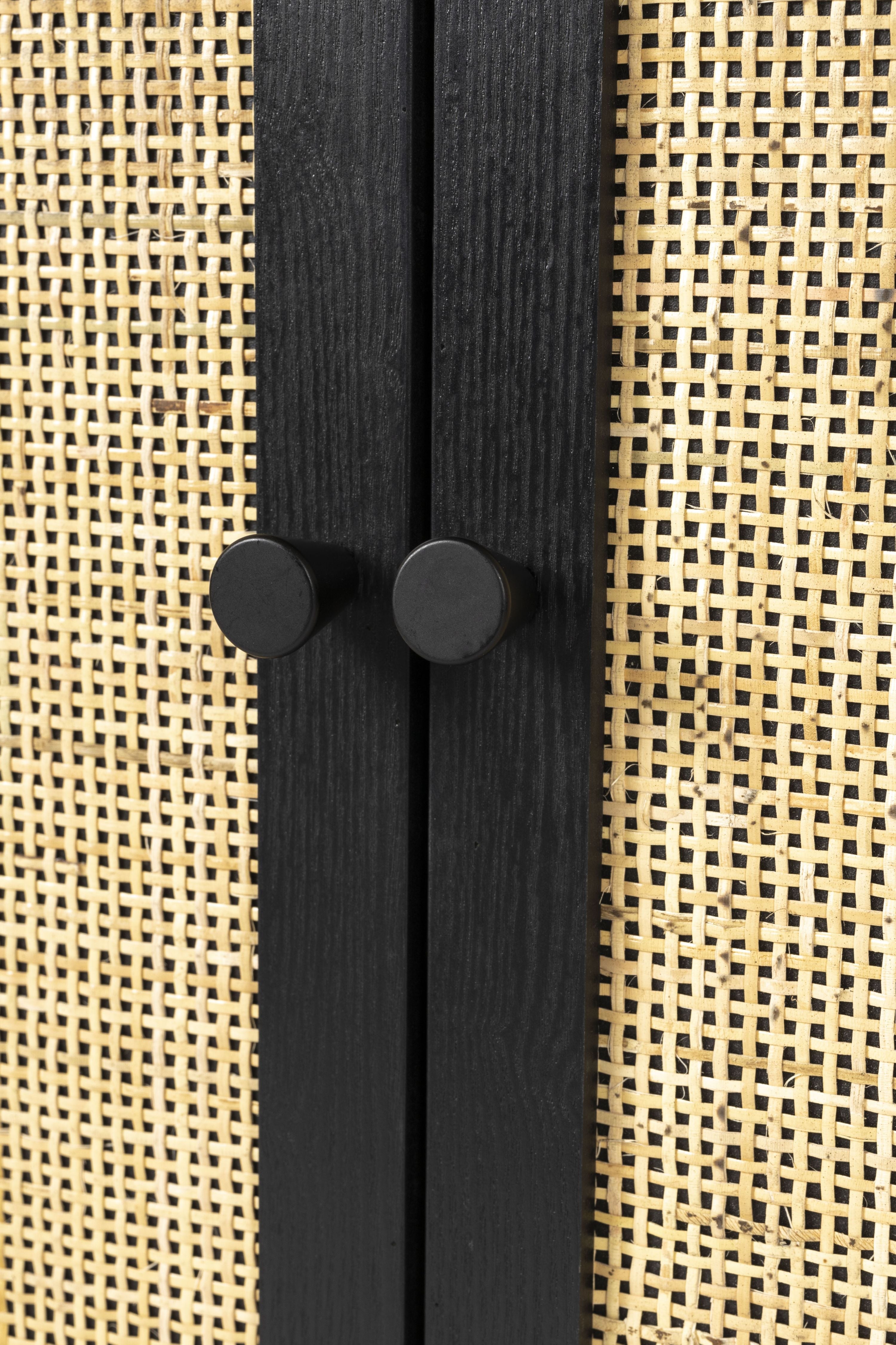 Szafka RTV Guuji to eleganckie i funkcjonalne rozwiązanie, idealne do każdego wnętrza. Wykonana z lakierowanego drewna MDF, wyposażona w drzwi rattanowe, doskonale pasuje zarówno do nowoczesnych, jak i klasycznych aranżacji. Nogi z żelaza malowane proszkowo zapewniają stabilność i trwałość. Czarno-naturalna kolorystyka szafki harmonijnie współgra z różnorodnymi stylami wystroju wnętrz, dodając im wyjątkowego charakteru. Szafka RTV Guuji to doskonały wybór dla osób ceniących elegancję i funkcjonalność w swoim domu.