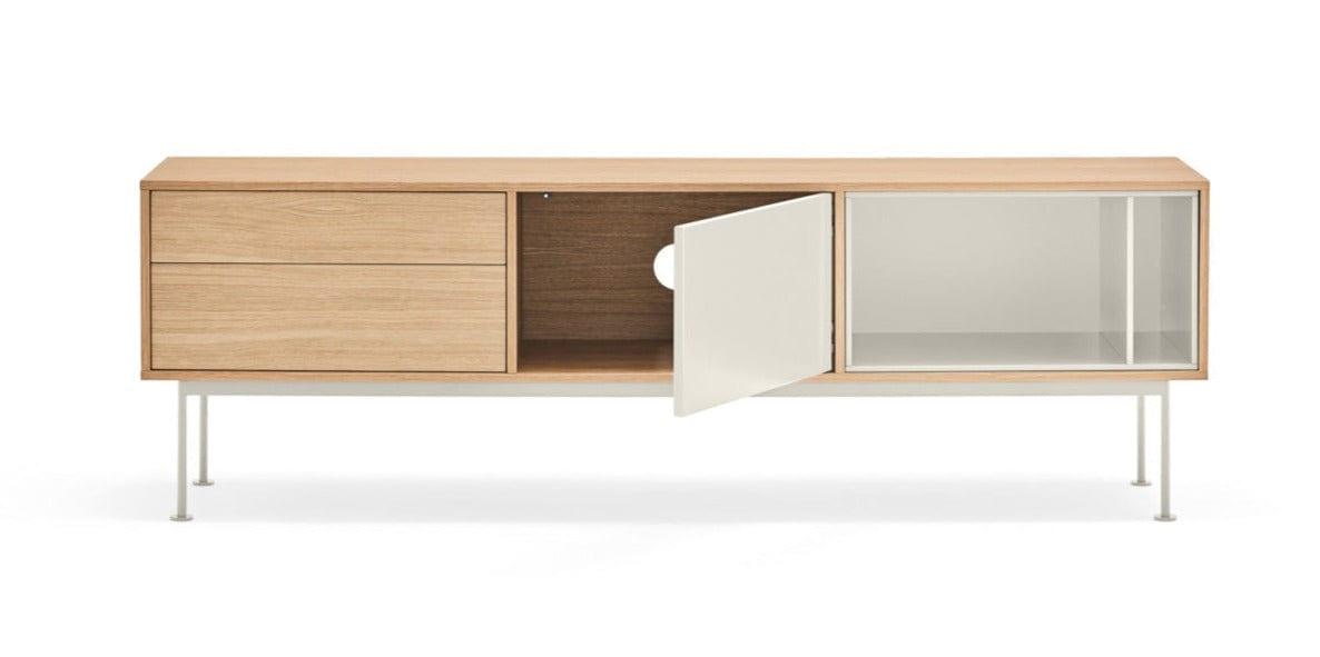 Precyzyjne wykonanie i świetne wyczucie proporcji przez projektantów hiszpańskiej marki Teulat sprawiło, że możesz cieszyć się tym dziełem sztuki użytkowej prosto ze swojego salonu. Połączenie drewna z kremowym odcieniem dodało szafce RTV subtelnego wyrazu.