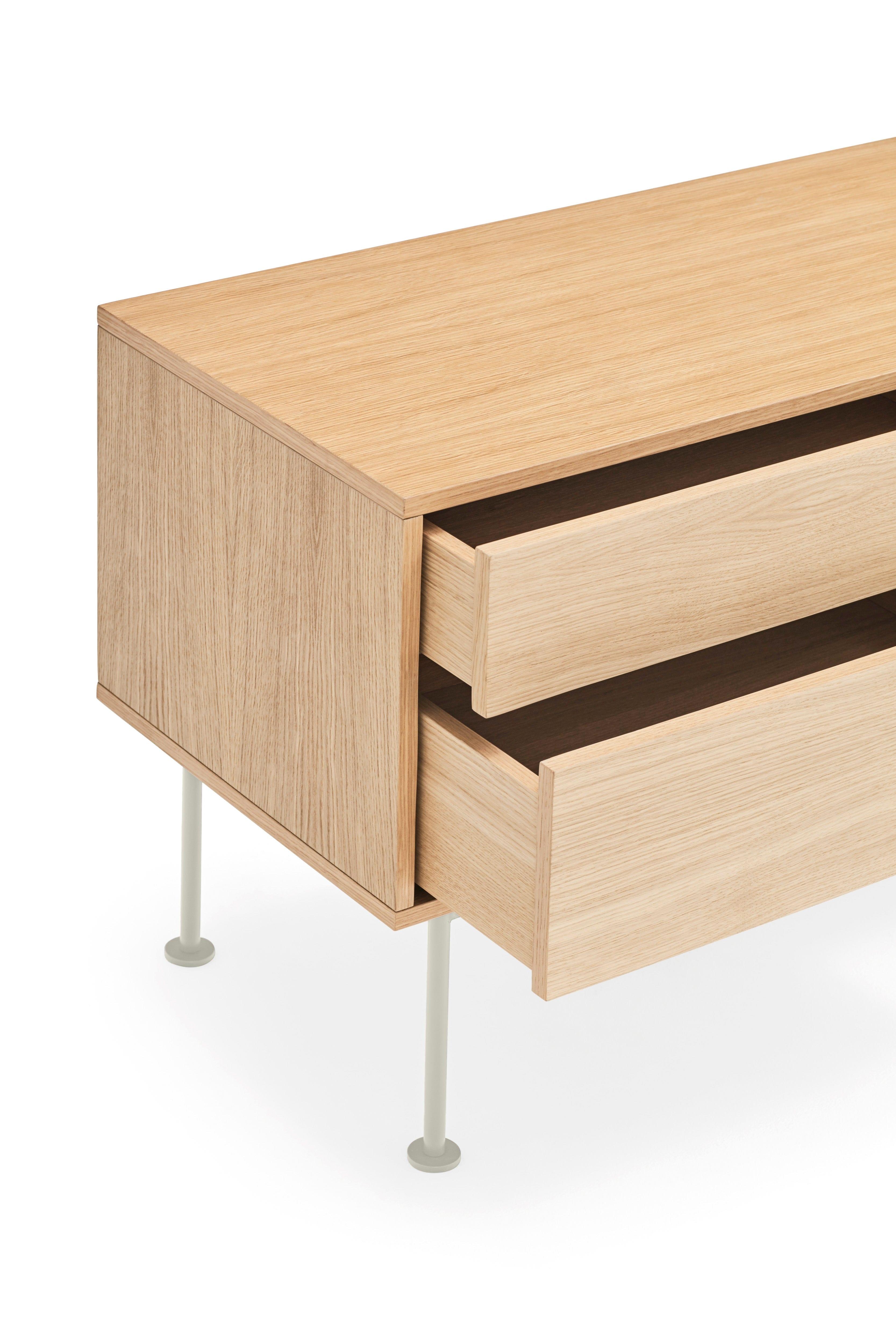 Doskonale zachowana forma oraz klasyczna konstrukcja szafki RTV Yoko sprawiają, że jest to projekt ponadczasowy. Dodatkowo szafka RTV stojąca z kolekcji Yoko została wykonana z wysokiej jakości materiałów, takich jak fornir dębowy, oraz stal nierdzewna.