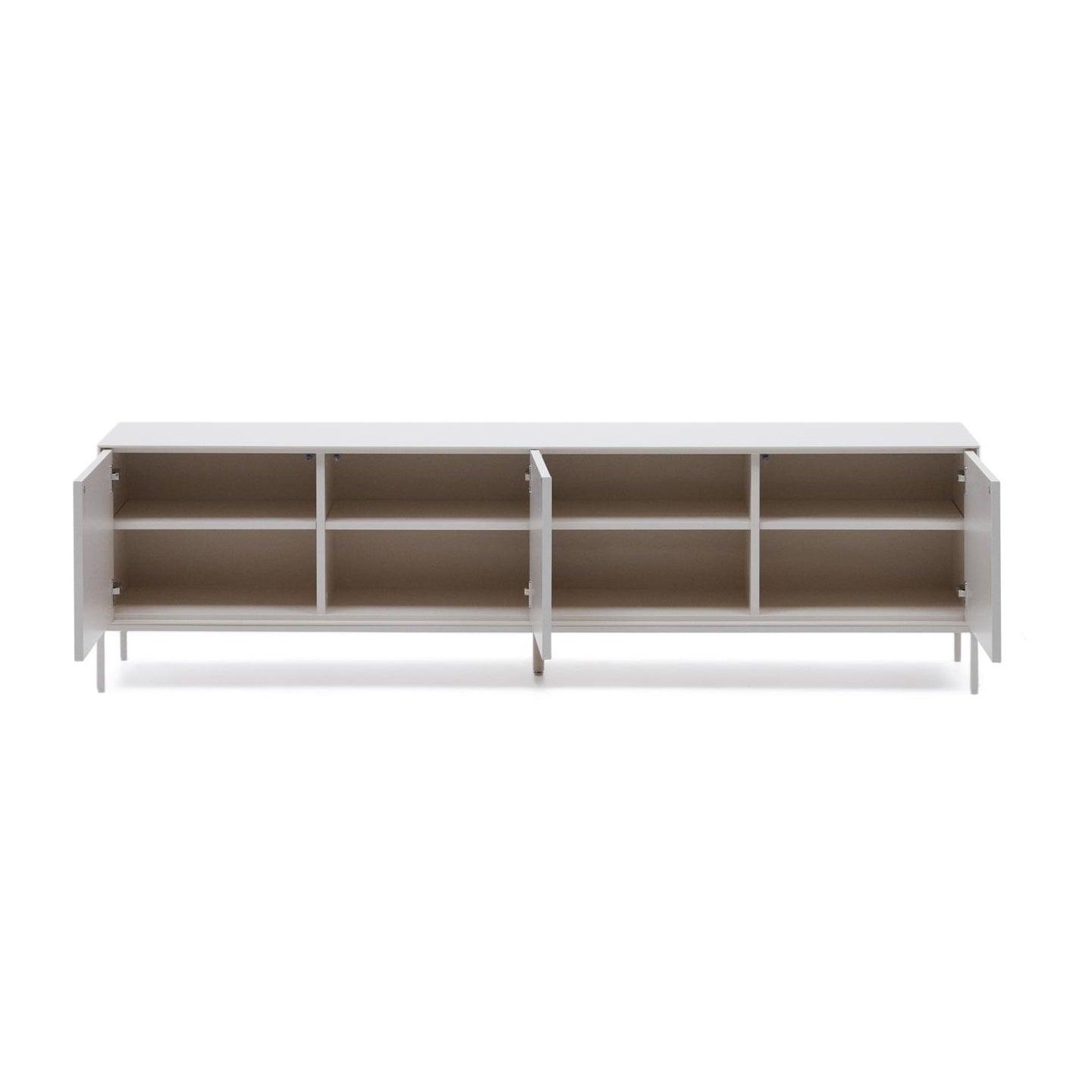 Wysoka szafka Vedrana, stworzona przez doświadczony zespół projektowy La Forme, reprezentuje doskonałą harmonię pomiędzy białym lakierem a stalą, tworząc wyjątkowe połączenie funkcjonalności i estetyki. To unikalne połączenie materiałów sprawia, że Vedrana doskonale wpisuje się w różnorodne typy domów i style aranżacyjne, podkreślając ich elegancję i nowoczesność.
