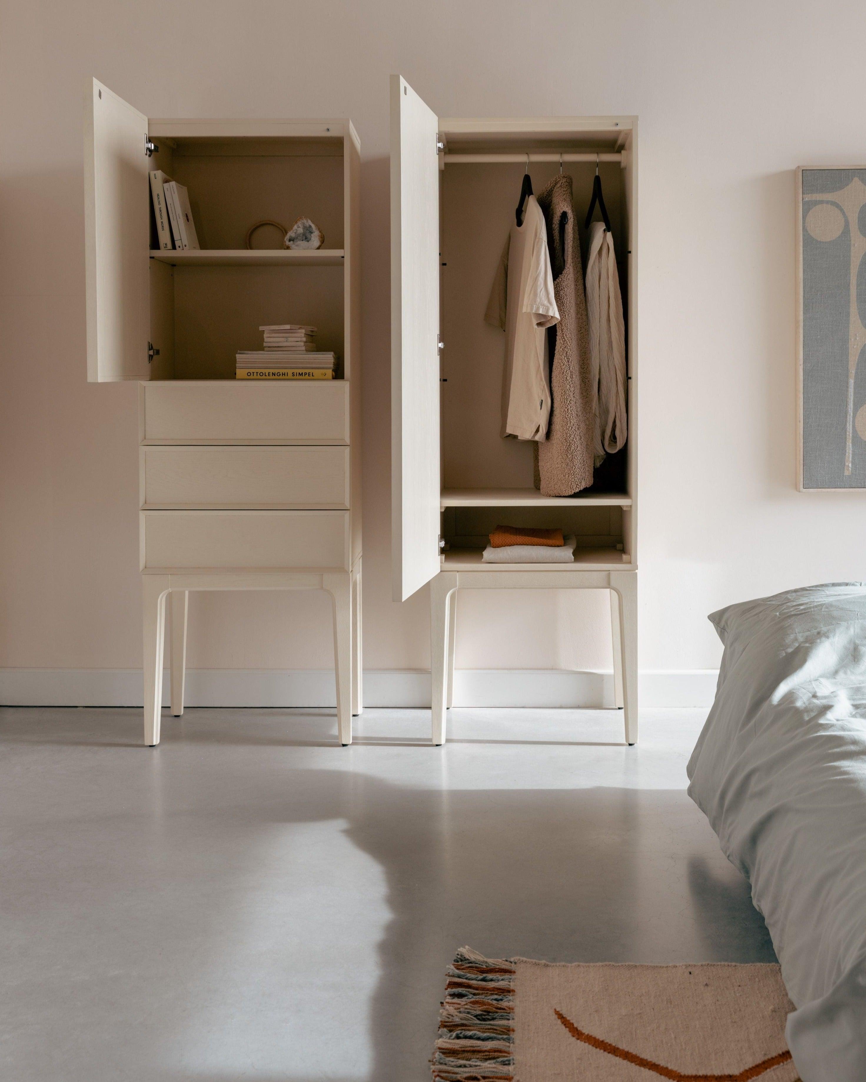 Zaprojektowana z dbałością o szczegóły szafa June wyróżnia się efektownym wykończenie na drzwiczkach. Za przyciągającym uwagę frontem z drewna znajdują się przestronne szuflady, oferujące miejsce do przechowywania wszystkich niezbędnych rzeczy.