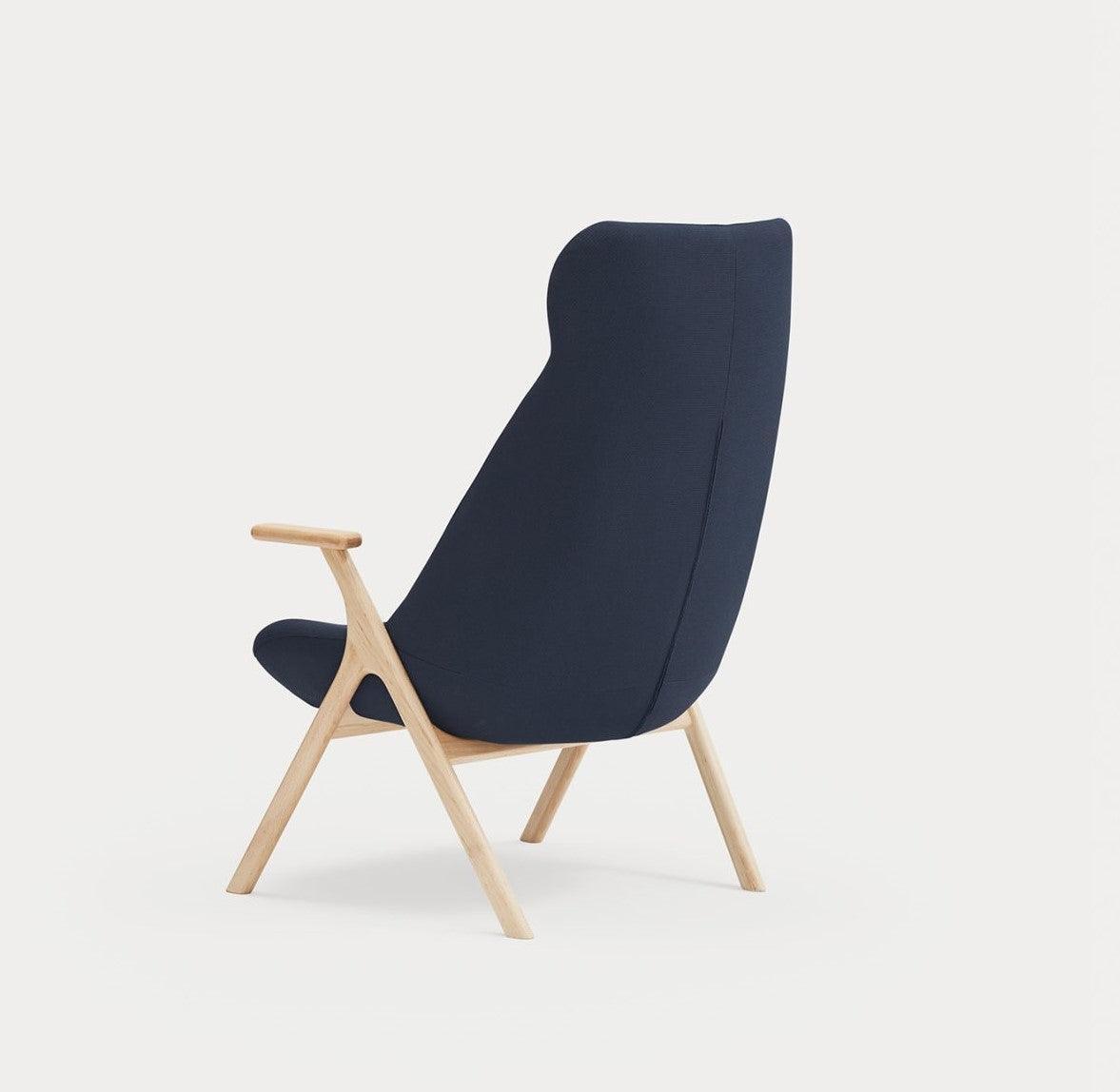 Fotel wysoki Dins w ciemnoniebieskim kolorze to mebel będący połączeniem dwóch przeciwstawnych koncepcji, które współistnieją w harmonii proporcji. Delikatność i ciepło drewnianej konstrukcji fotela Dins są w pełni zintegrowane z obszernym tapicerowanym korpusem, który wyróżnia się wyższym oparciem niż standardowe fotele.