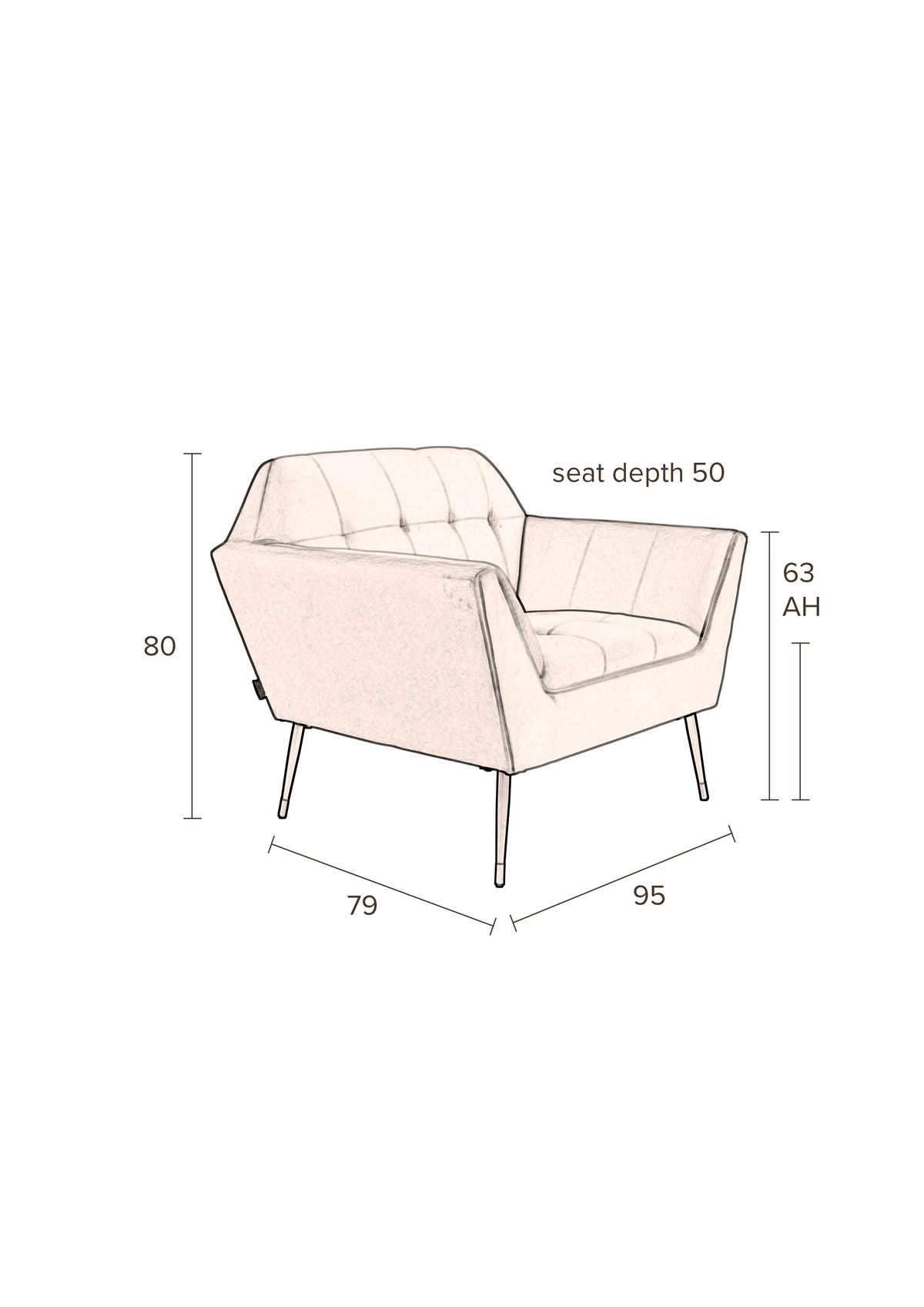 Materiał: 100% tkaniny poliestrowej aksamitnej, Rama z drewna sosnowego. Czarne, malowane proszkowo żelazne nogi z mosiężnymi stopami i plastikowymi zaślepkami.
