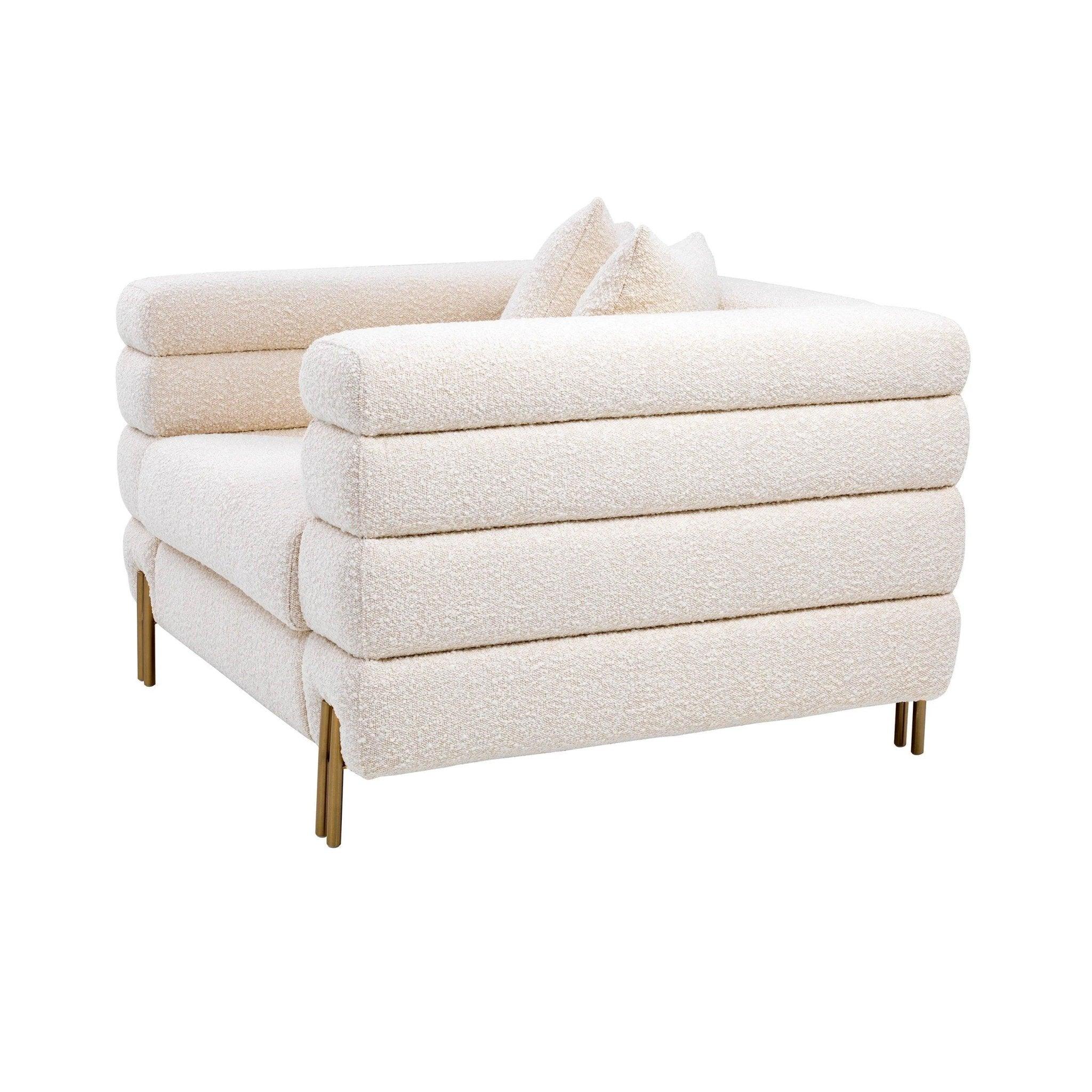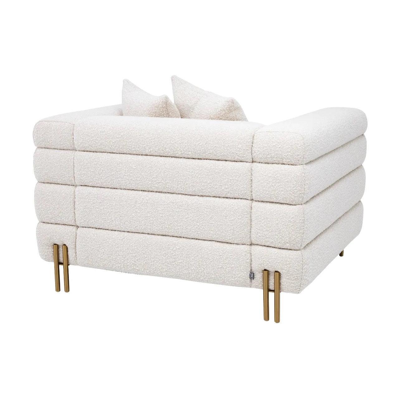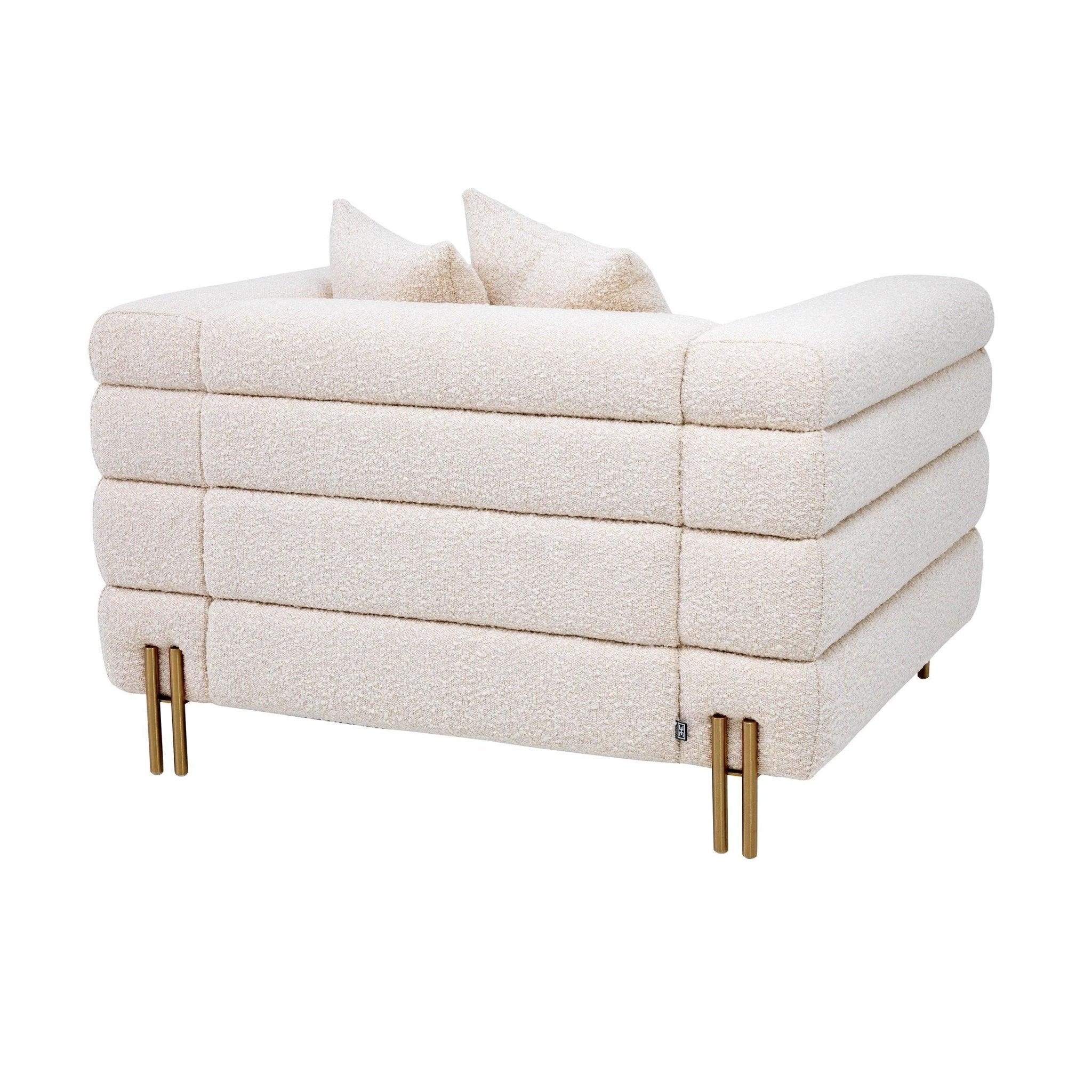Fotel York to prawdziwa oda dla stylu i elegancji. W kolorze kremowym bouclé z nogami wykończonymi szczotkowanym mosiądzem, emanuje niepowtarzalnym wdziękiem i nutą dekadencji.