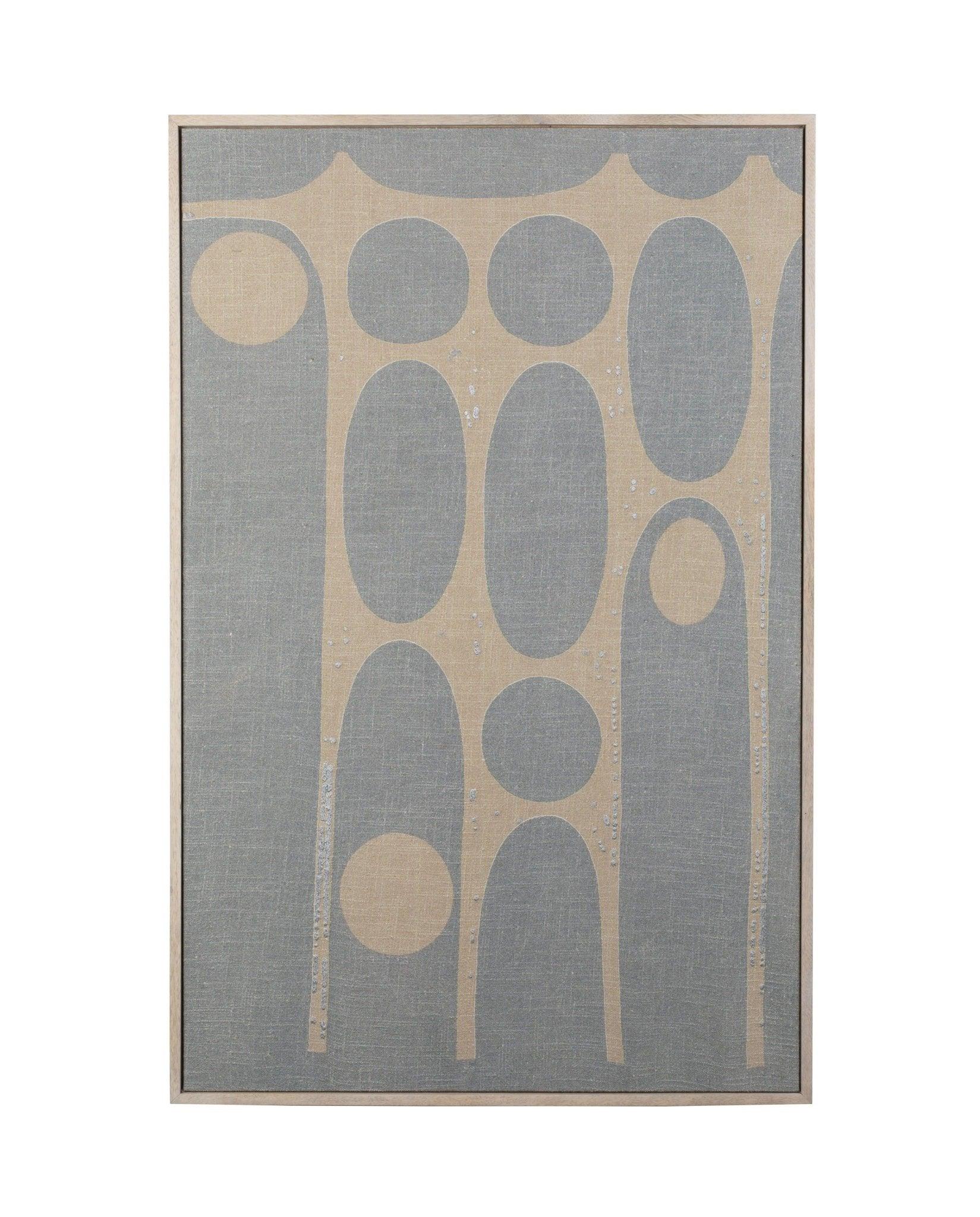 Zawieś Galaxy na ścianie lub swobodnie umieść na szafce. Rama Galaxy wykonana jest z drewna mango. Płótno wykonane jest z niebieskiej i beżowej bawełny.