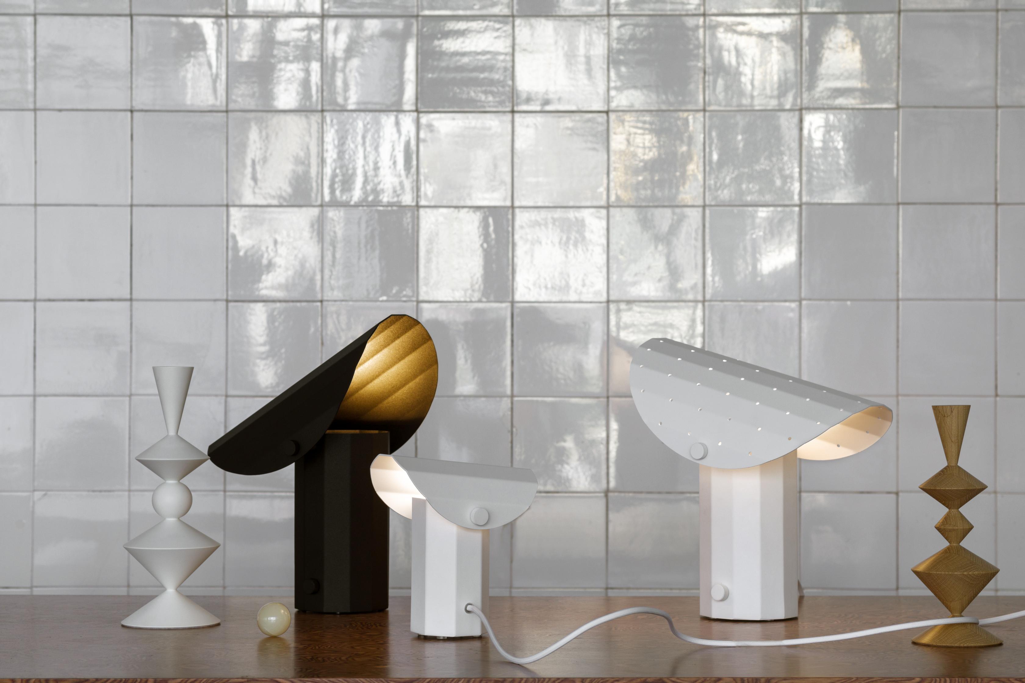 Lampa stołowa Apolin projektu Grynasz Studio to wyjątkowy przykład współczesnego designu inspirowanego wzornictwem przemysłowym z połowy XX wieku. Jej forma nawiązuje do modeli tworzonych w zakładach MEOS i ZAOS, a fasetkowy daszek pełni funkcję odbłyśnika, rozpraszając światło w miękki i nastrojowy sposób. Konstrukcja wykonana z profilowanej stali nierdzewnej lakierowanej proszkowo w eleganckim, czarnym kolorze harmonijnie wpisuje się w estetykę modernistyczną. Lampa stołowa posiada wbudowany ściemniacz umożliwiający regulację natężenia światła, co czyni ją praktyczną i komfortową w codziennym użytkowaniu.