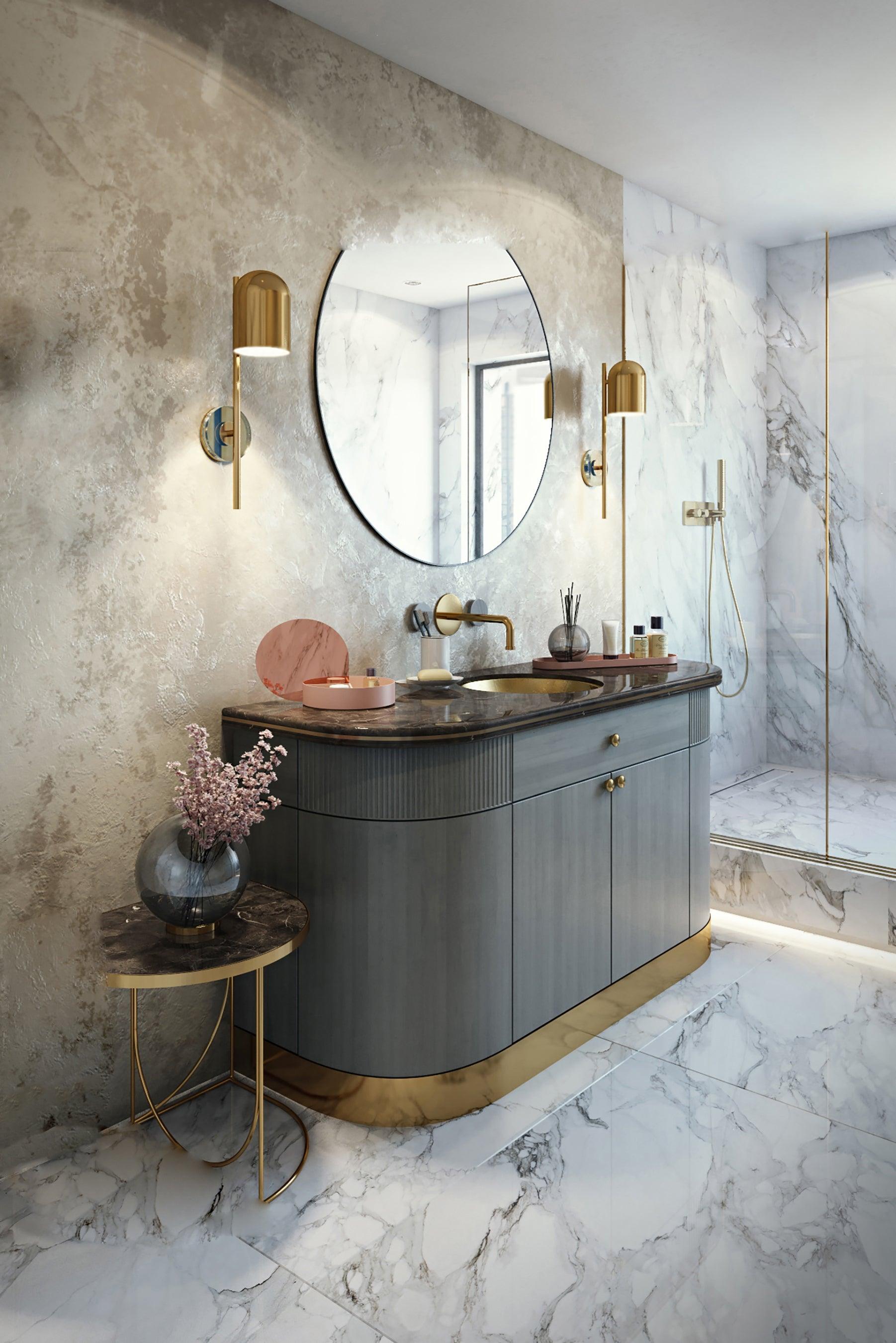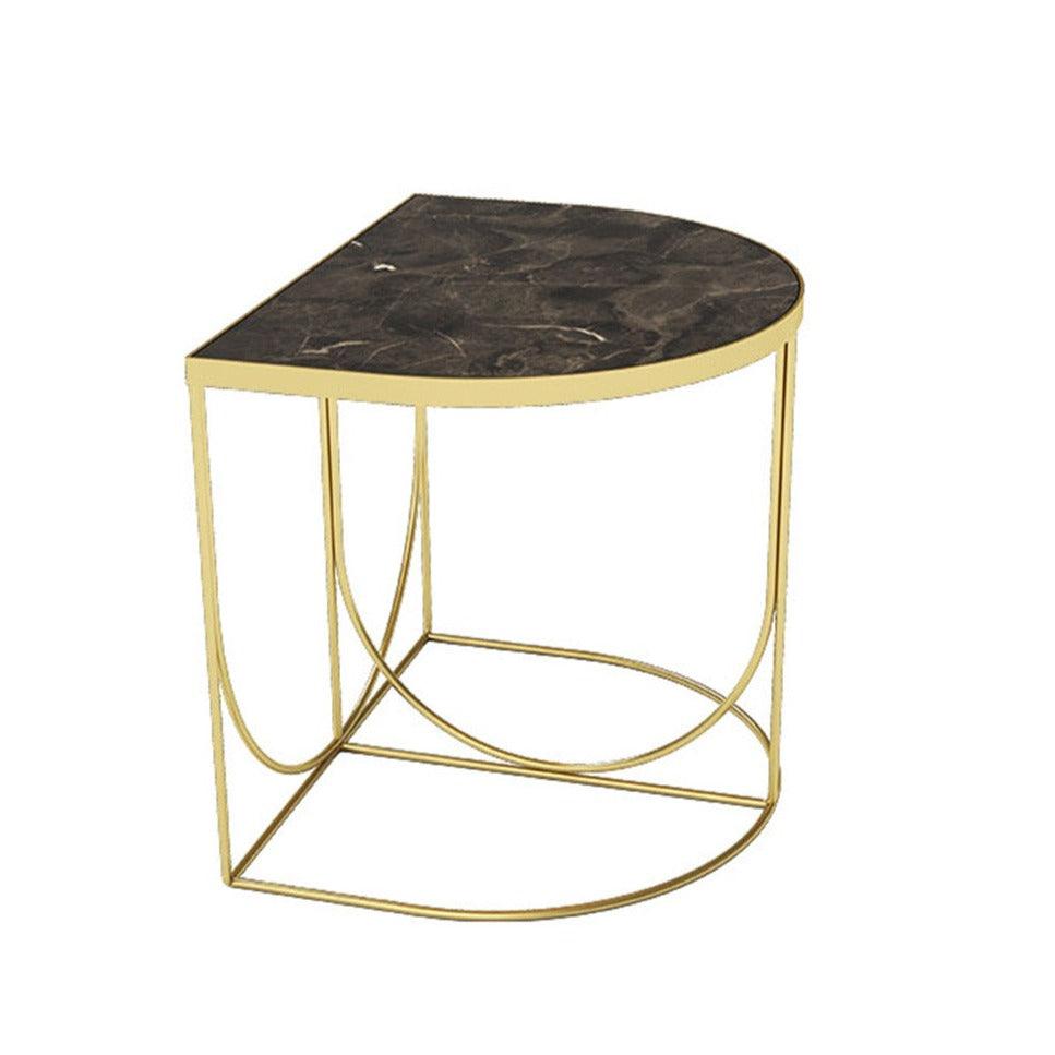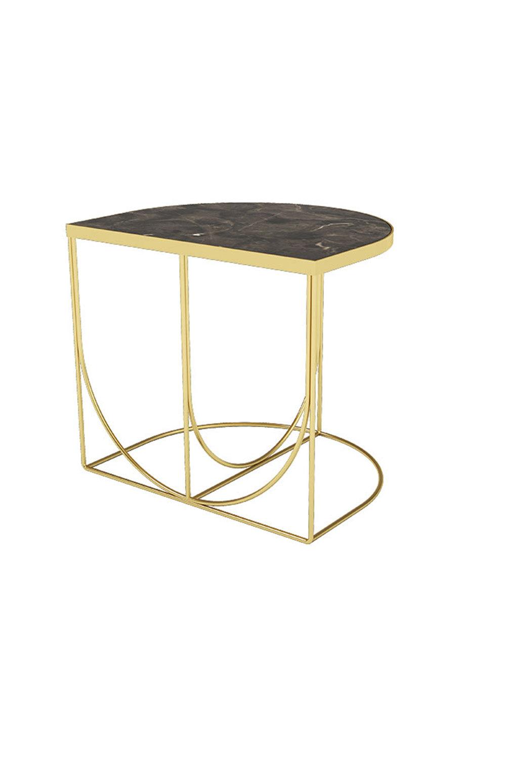 Stolik boczny SINO brązowy marmur ze złotą podstawą