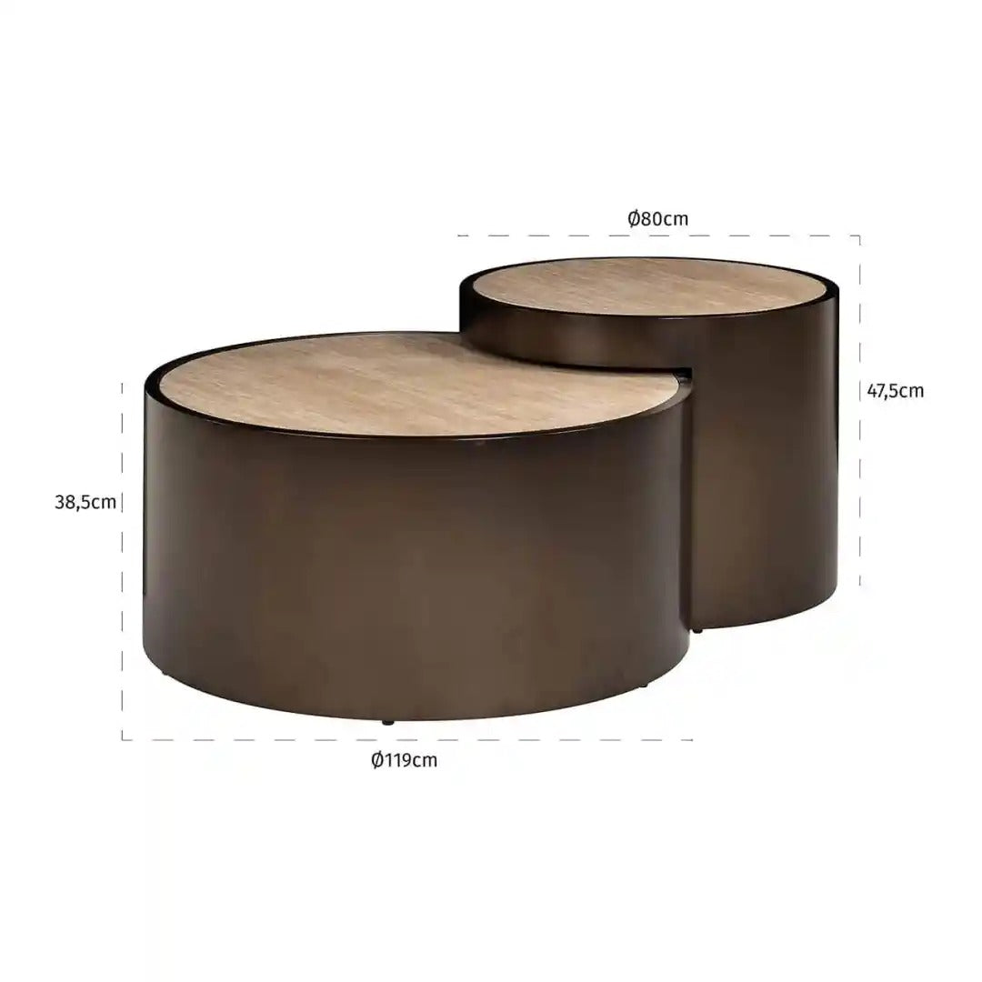 Ten komplet stolików doskonale sprawdzi się w salonie jako centrum strefy wypoczynkowej. Większy stolik oferuje przestronny blat, natomiast mniejszy może służyć jako dodatkowa powierzchnia do serwowania lub stolik pomocniczy. Stabilna konstrukcja i solidne wykonanie zapewniają komfort użytkowania oraz odporność na codzienne użytkowanie.