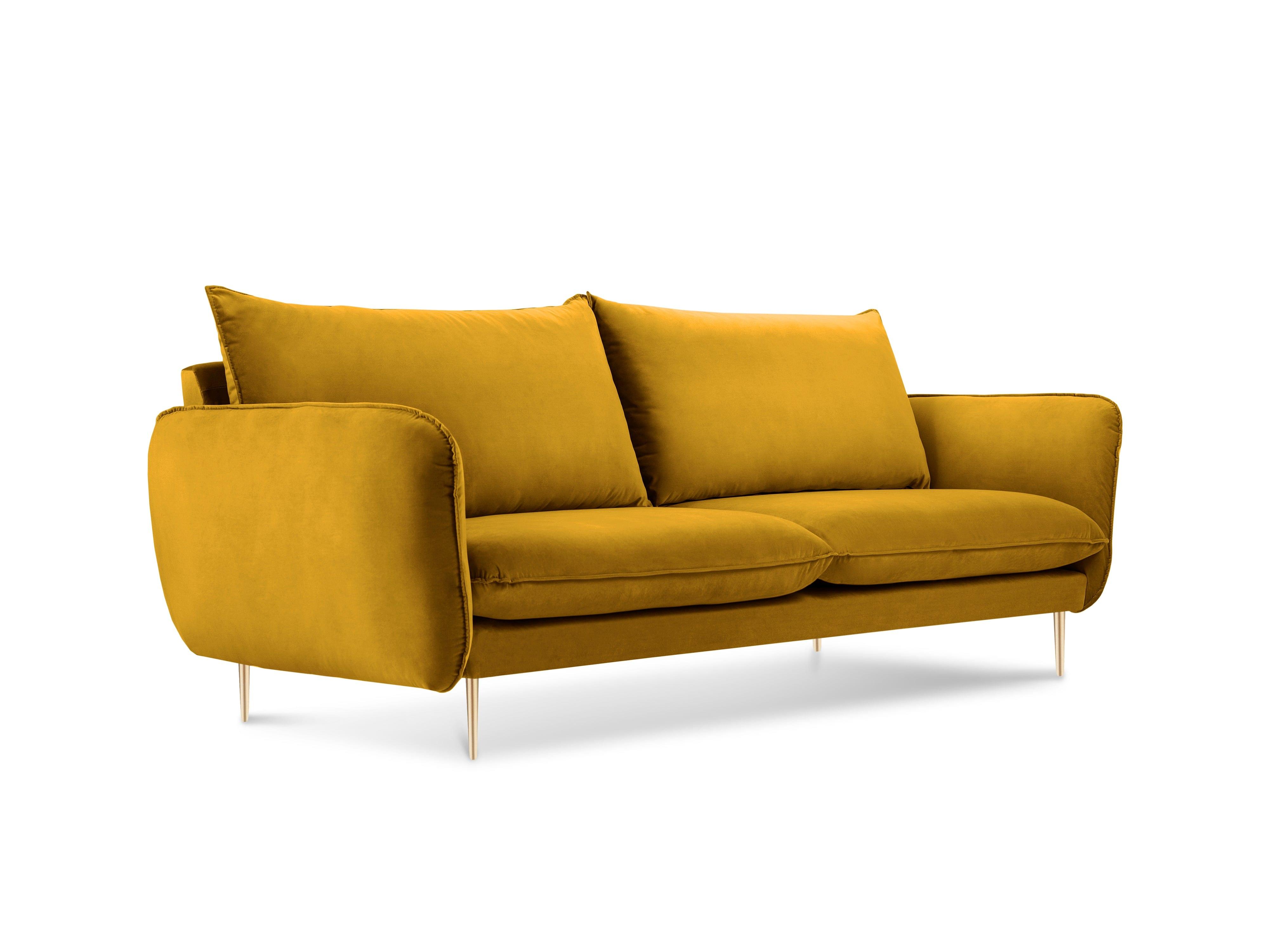 Sofa aksamitna 2-osobowa VIENNA żółty ze złotą podstawą Cosmopolitan Design    Eye on Design