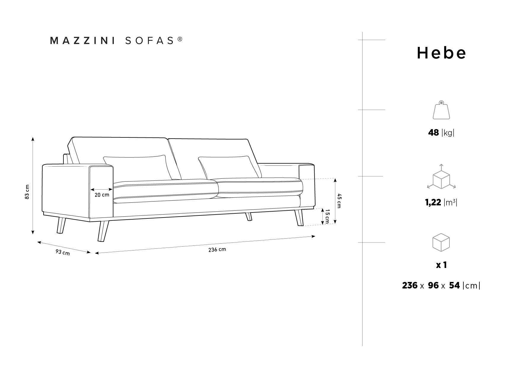 Fügen Sie Ihrem Interieur eine neue Dimension von Eleganz und Stil hinzu. Danke Sofa aus der Hebe -Sammlung. Ihr vielseitiges Design verläuft sowohl in kleineren als auch in größeren Räumen perfekt. Achten Sie auf die schöne, dekorative, hölzerne Basis und breite, feste Armlehnen, die den Möbeln einen einzigartigen Charakter verleihen. Dies ist eine ideale Lösung, die Ihre Treffen mit Freunden oder Familie zu einem einzigartigen Charakter macht. Entdecken Sie alles, was Sie brauchen, um eine gemütliche Atmosphäre in Ihrem Zuhause zu schaffen, indem Sie Möbel aus der Hebe -Kollektion auswählen.
