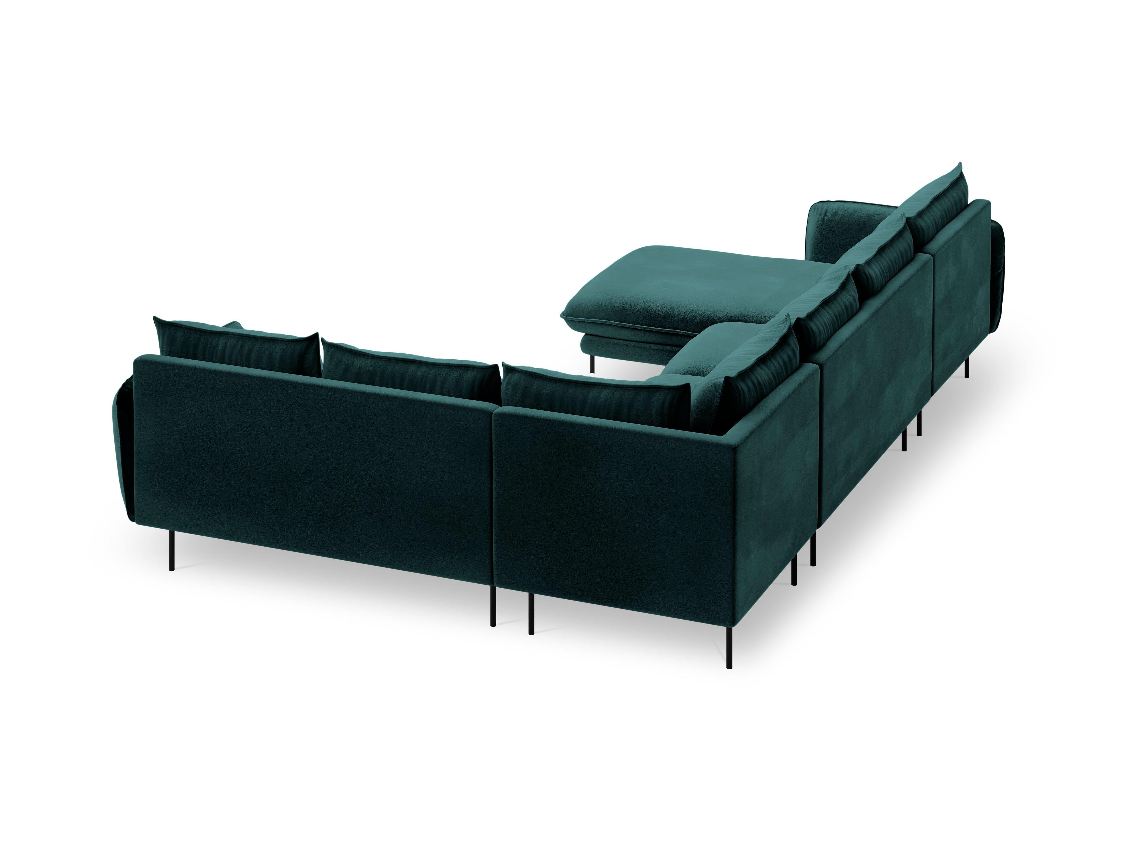 Narożnik prawostronny aksamitny panoramiczny VIENNA morski z czarną podstawą Cosmopolitan Design    Eye on Design