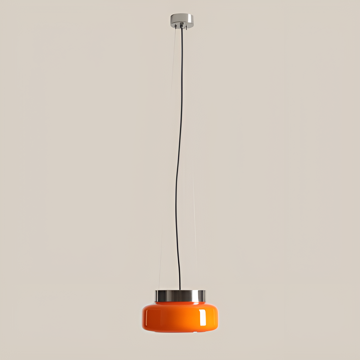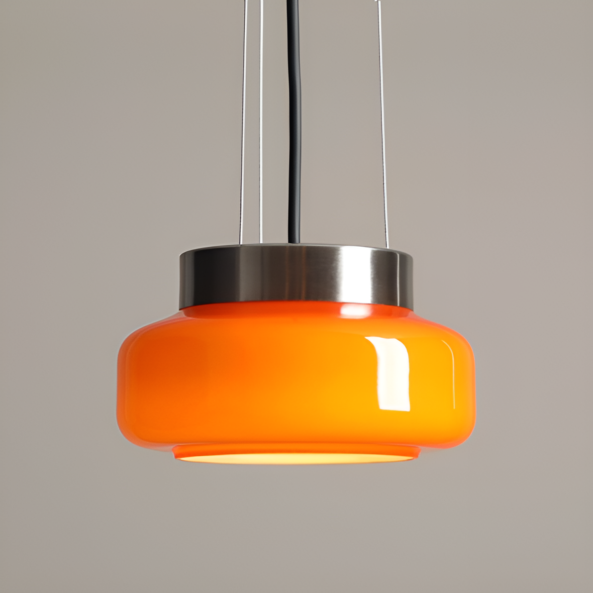 Die Bonbon- Pendelleuchte aus der Mikołaj Nicer-Kollektion (Nicer Design) ist ein eleganter Akzent, der jedem Interieur Wärme und Gemütlichkeit verleiht. Der zarte, orangefarbene Lampenschirm aus hochwertigem Opalglas streut das Licht dezent und schafft so eine angenehme und intime Atmosphäre. Es eignet sich perfekt als Blickfang in der Küche, im Esszimmer, im Wohnzimmer oder im Flur und verleiht dem Interieur Eleganz und modernen Stil. Durch die kompakte Größe der Lampe passt sie perfekt zu anderen Designelementen, ohne den Raum zu dominieren.