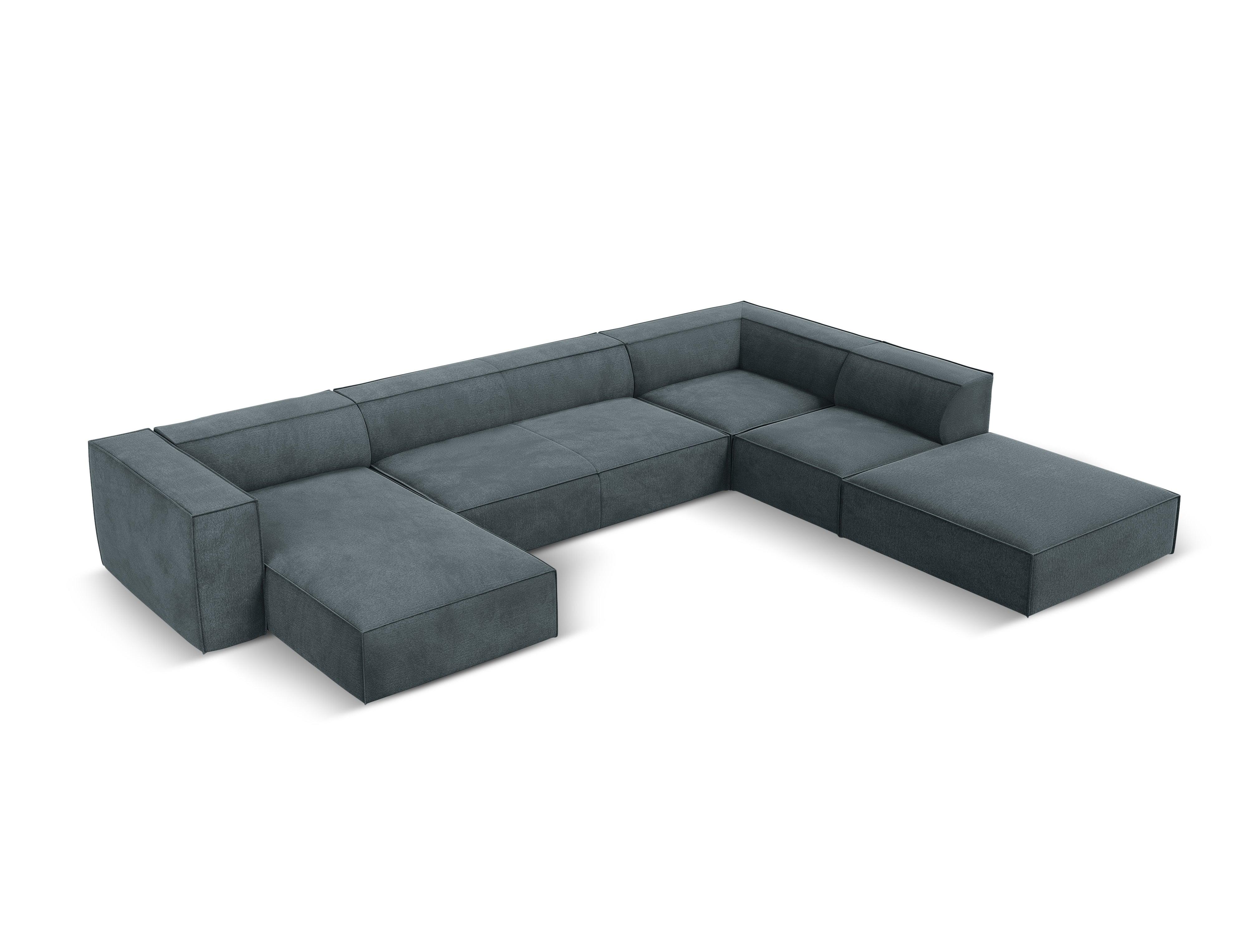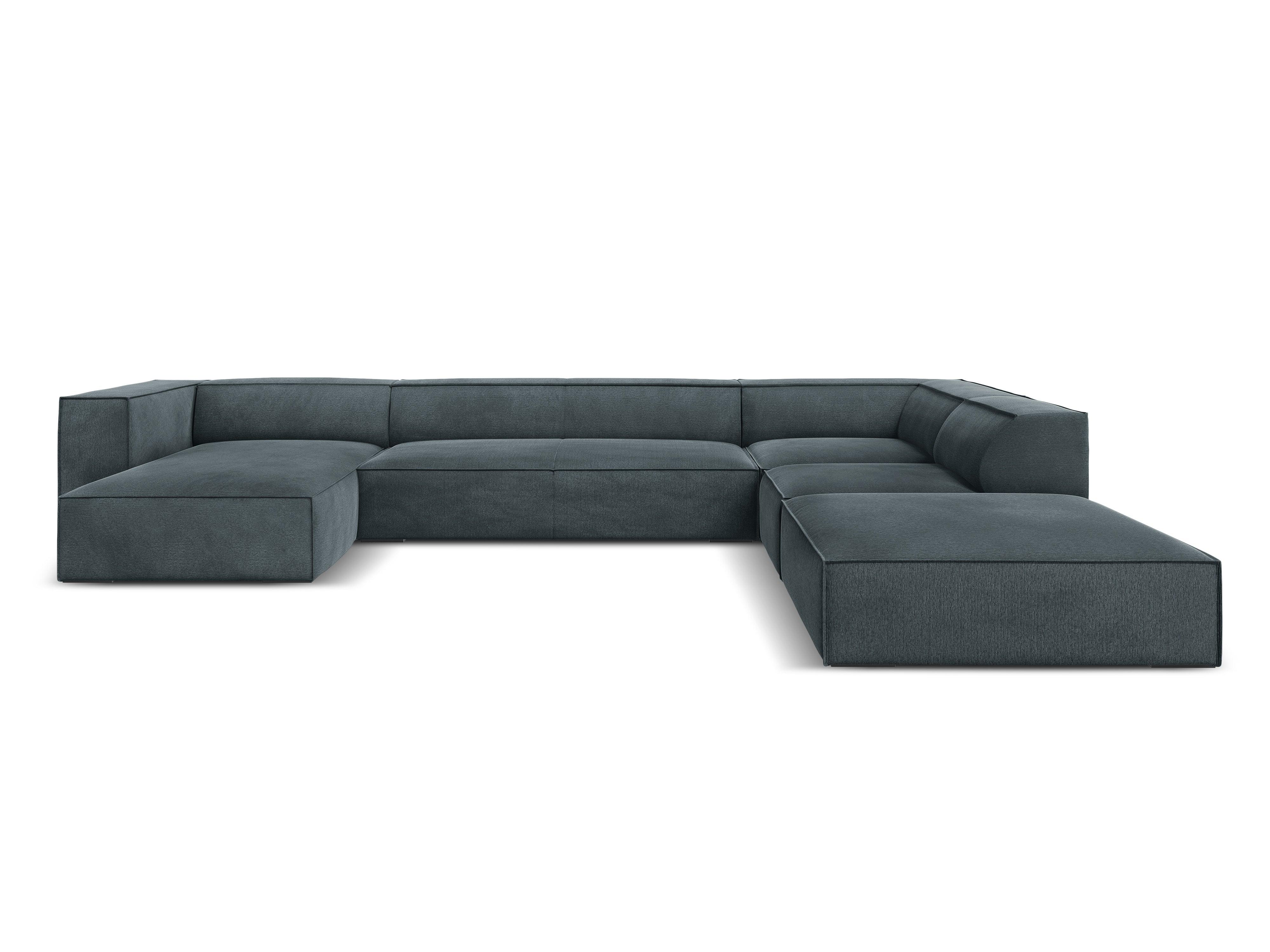 Eine Ecke für sechs Personen Madame mit einem ausgeprägten Charakter und einem eleganten Finish ist eine gute Wahl für ein modernes Wohnzimmer. Der tiefe Sitz eignet sich sowohl für soziale Versammlungen als auch bis zu einem Moment der Entspannung nach einem harten Tag. Sie können bequem in freien Positionen ruhen. Mit einer niedrigen Figur, breiten Armlehnen und Rücken erzeugt es einen gemütlichen Block.