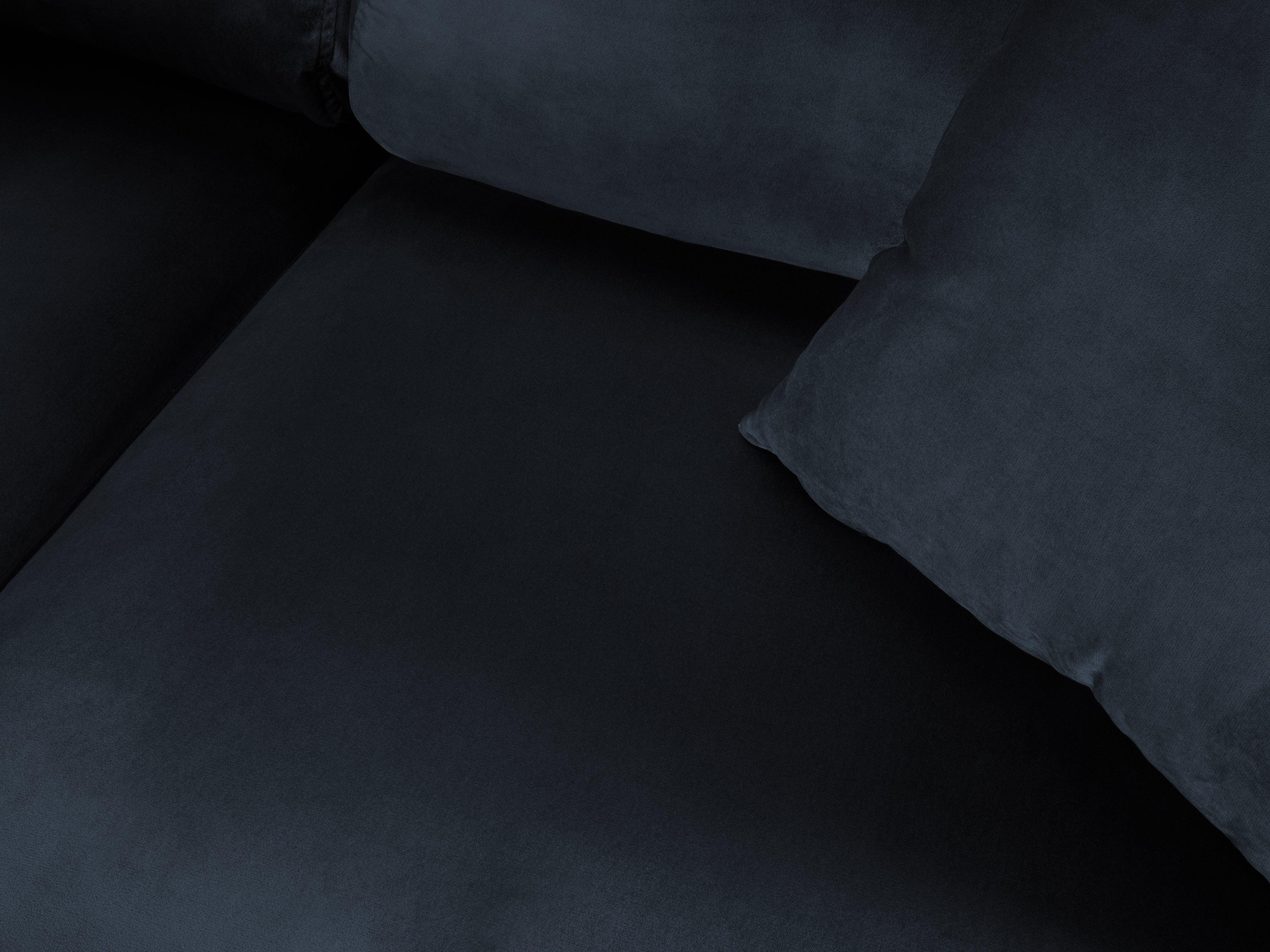 Eine linkshändige 5-Personen-Ecke mit einer dunkelblauen Kyoto-Schlaffunktion mit einer goldenen Basis