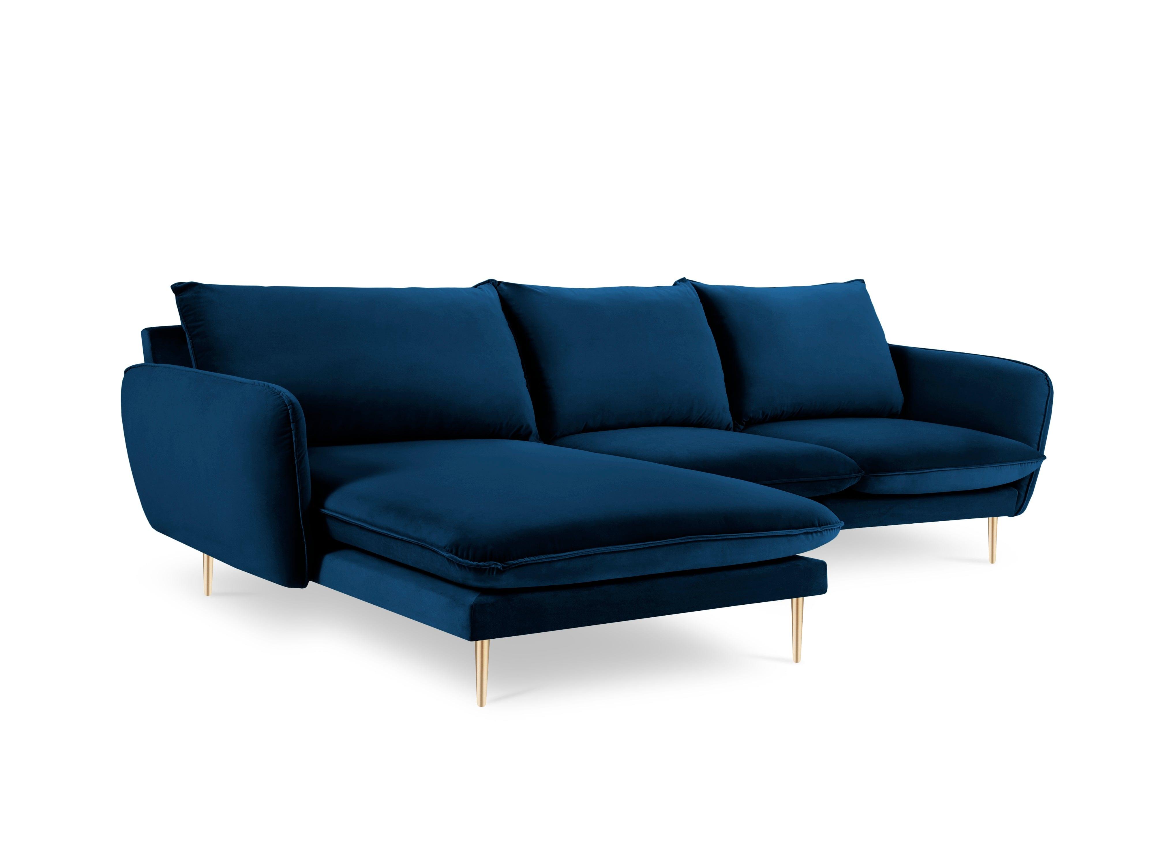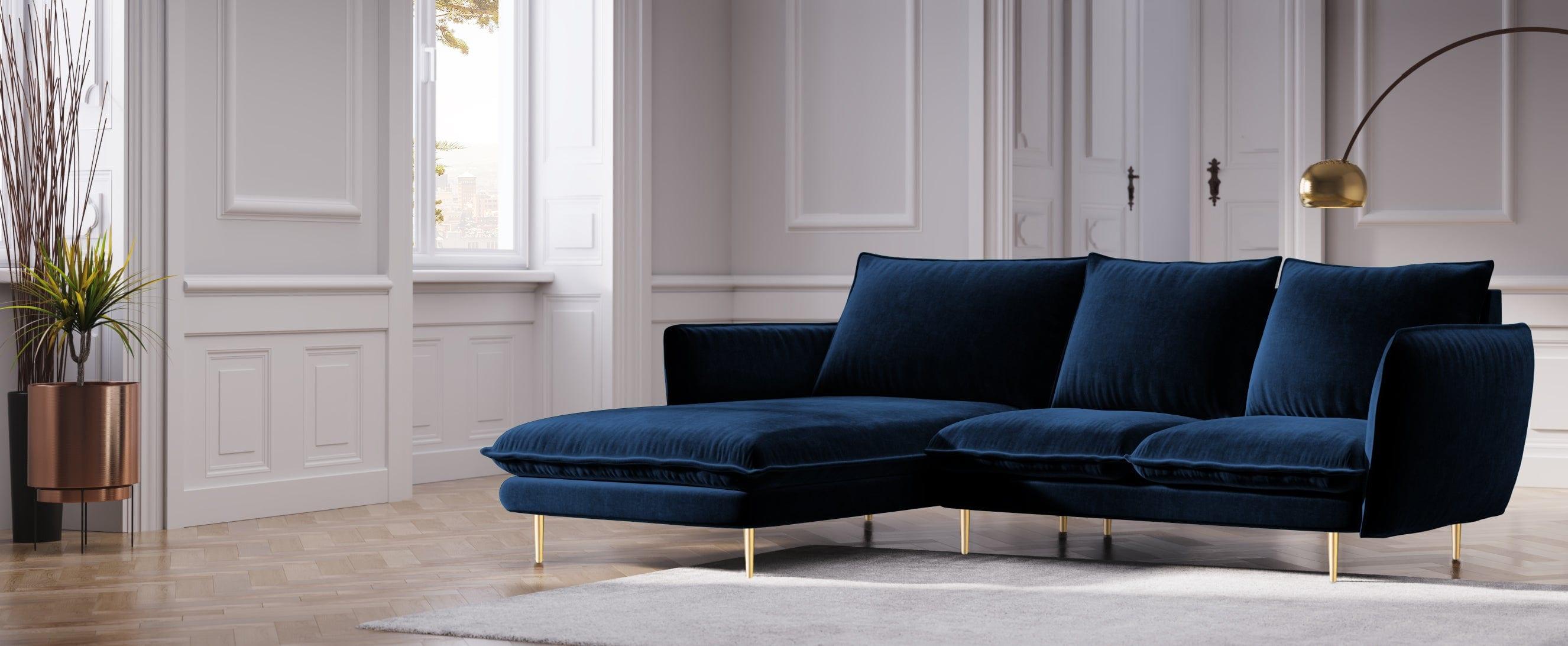 Links -Hand -Samt -Ecke Wiener Blau mit einer goldenen Basis