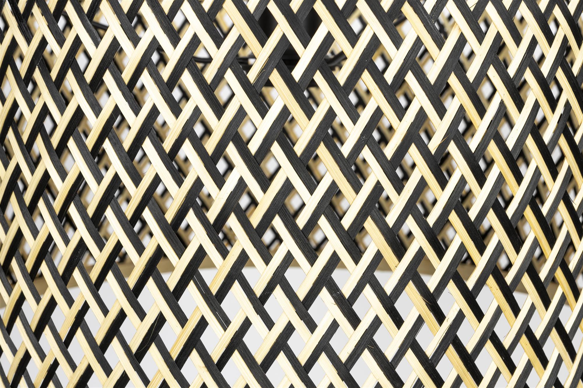 Lampe hängen ISLA ist eine einzigartige Kombination aus natürlicher Eleganz und Funktionalität, die jedem Innenraum warmes Licht verleiht. Es besteht aus Bambusholz und präsentiert ein subtiles Design, das sich harmonisch mit modernen und klassischen Arrangements einfügt. Der Kontrast der schwarzen Metallhaube mit einem Bambusschatten ergibt Lampe einzigartiger Charakter und Klarheit.