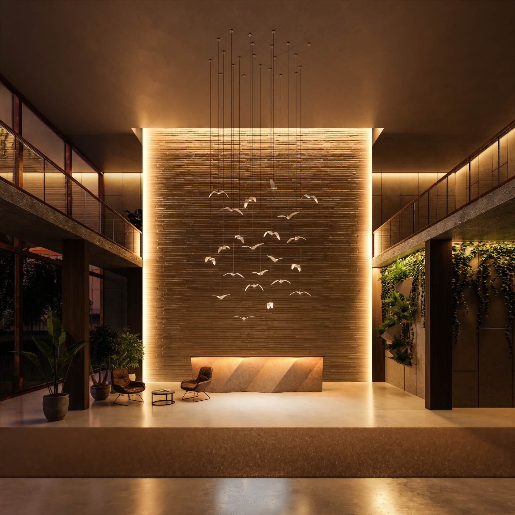 Äußere Hanglampen Nacht Vögel Außenglas