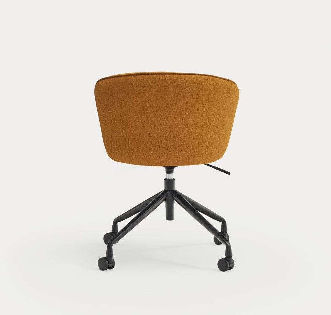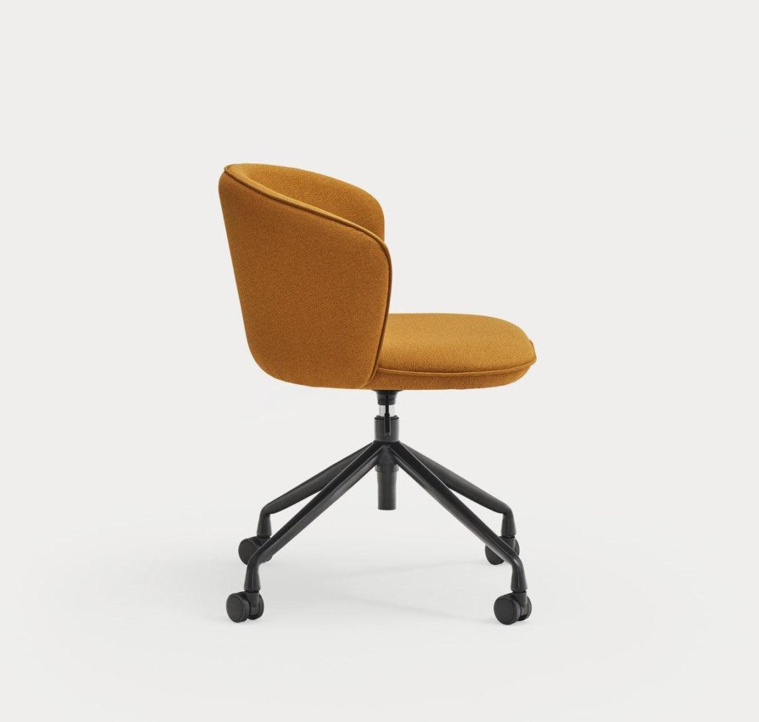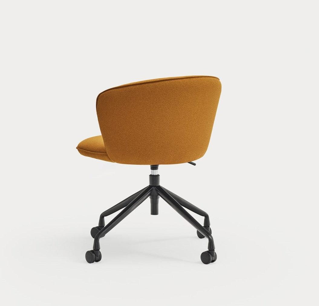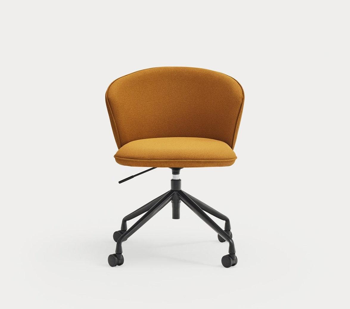Voll ausgestattet mit Rädern, Stuhl In einer intensiven Senffarbe ist eine Kombination aus Stil und Praktikabilität. Die Metallbasis ermöglicht eine reibungslose Drehung seiner Achse, die dem Benutzer unbegrenzte Bewegungsfreiheit ermöglicht. Dies wird besonders von Personen geschätzt, die lange Stunden am Schreibtisch verbringen oder an Besprechungen oder Konferenzen teilnehmen. Der breite Sitz bietet zusätzlichen Komfort, während sich die gepolsterte Rückenlehne perfekt an die Form des Körpers anpasst, wodurch der Muskeltonus reduziert und die Wirbelsäule unterstützt wird. Der ADD -Stuhl ist nicht nur eine ästhetische Wahl, sondern vor allem ein praktisches Element des Büro- oder öffentlichen Raumausrüstung.