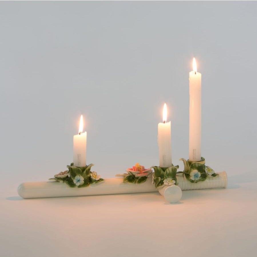 Der Candlestick besteht aus handgefertigtem, zartem Porzellan.