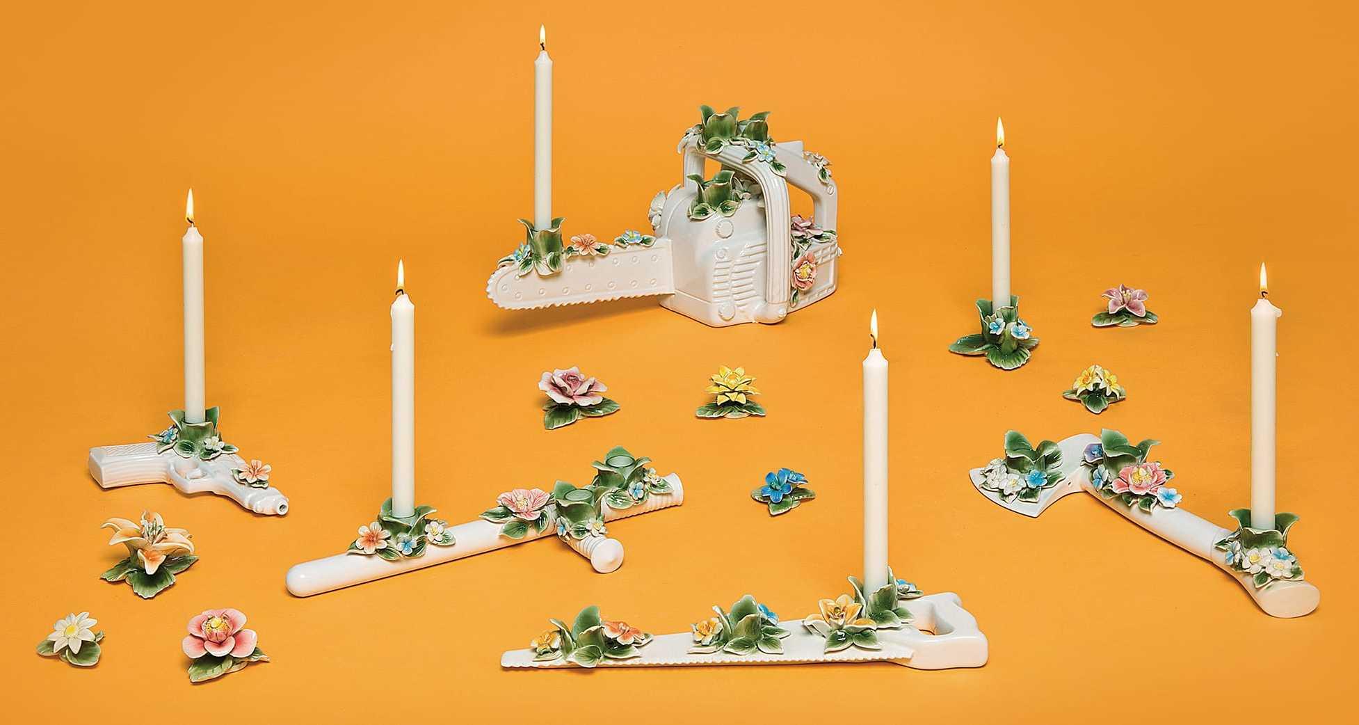 Porzellankerzenhalter Brand Seletti - der italienische König von Avant -Garte, der dekorative und praktische Funktionen in seinen Objekten kombiniert. Dies ist auch in diesem Fall der Fall! Die Form einer Waffe, in der Sie Kerzen einsetzen können, bietet einen lustigen Wert im Innenraum.