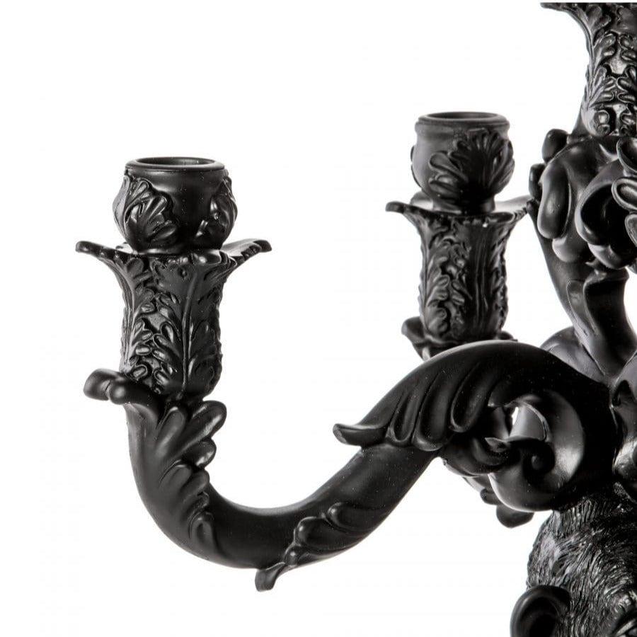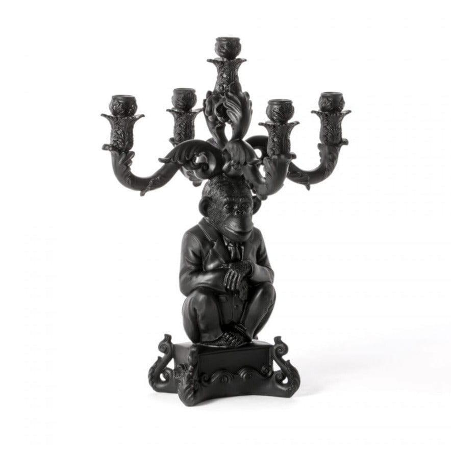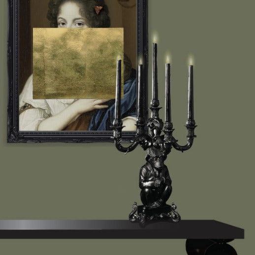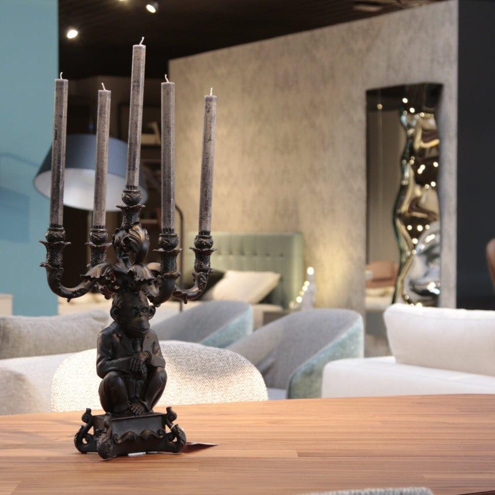 Der Burlesque -Schimpansenkerzenhalter bietet eklektisch Stil für ein unerwartetes Abendessen mit Kerzenschein. Es handelt sich um einen Vorschlag, der den Avant -Gart -Ansatz mit dem Barock Grotesque verbindet.