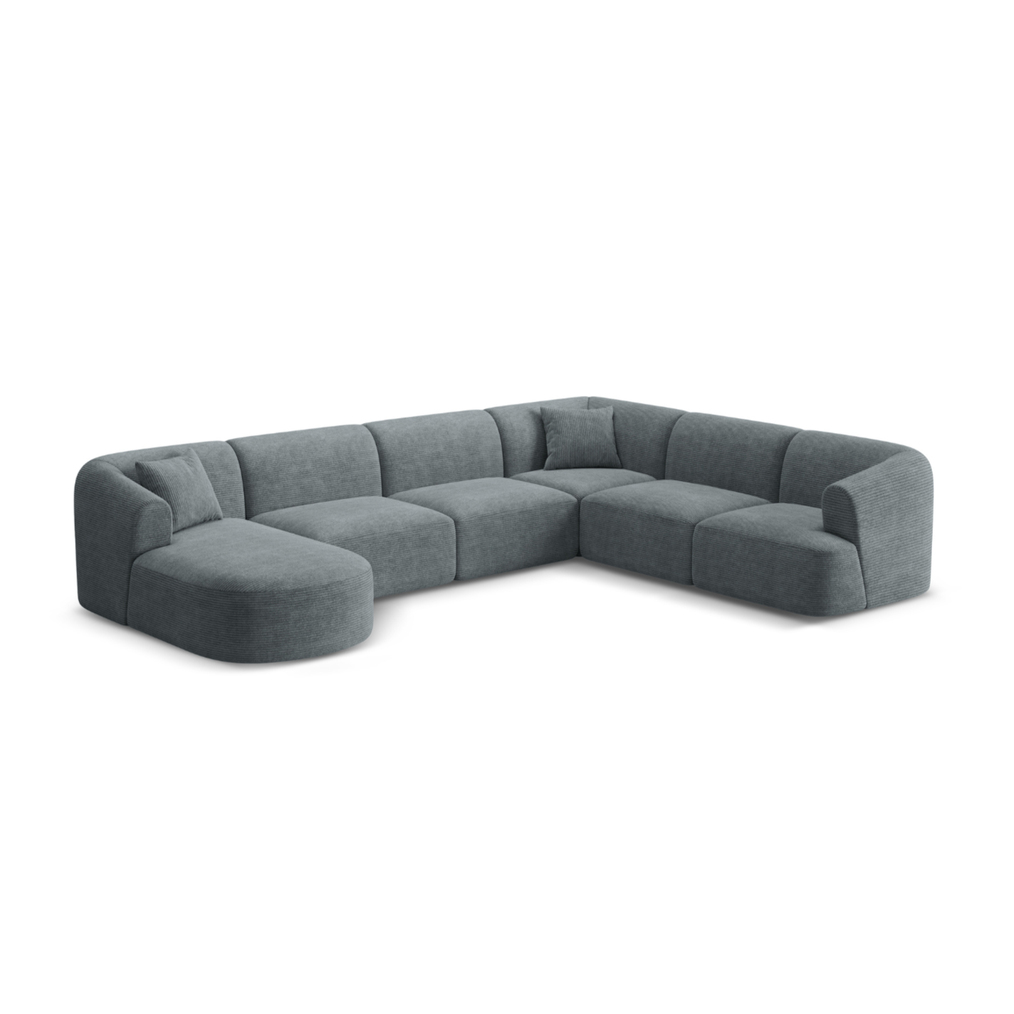 Rechtsseitige panoramische 7-sitzige Eckcouch CAMPI grauer Cordstoff