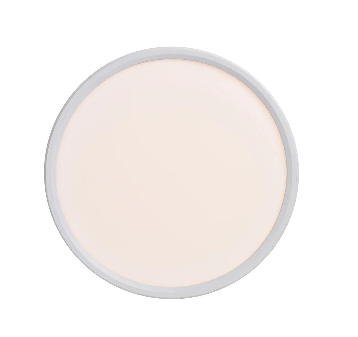 Liva ist rund Weiß Lampe Decke mit einem stromlinienförmigen und klassischen Erscheinungsbild. Erstellen Sie Ihre eigene, einzigartige Atmosphäre und setzen Sie verschiedene Farben für die Hintergrundbeleuchtung und das Licht ein.