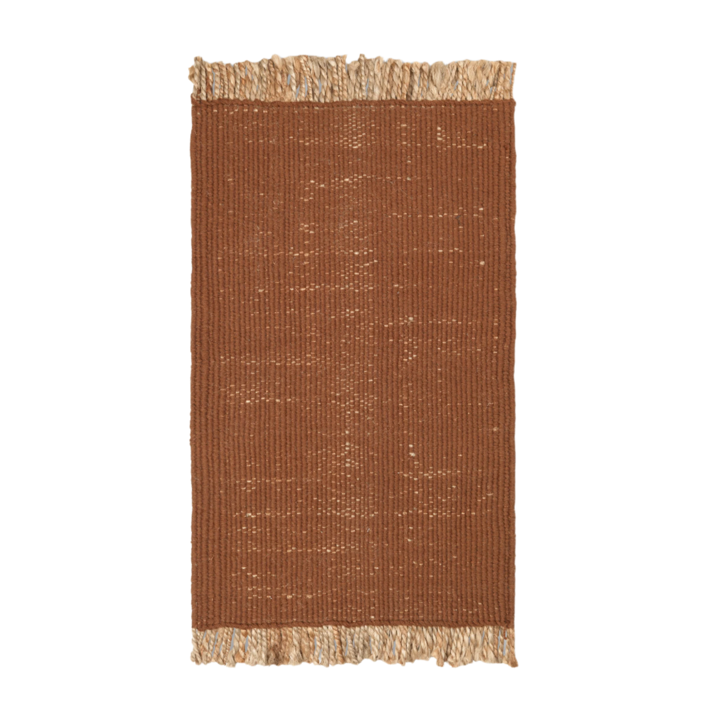 BLOCK MAT Ziegelsteinteppich mit beigen Fransen