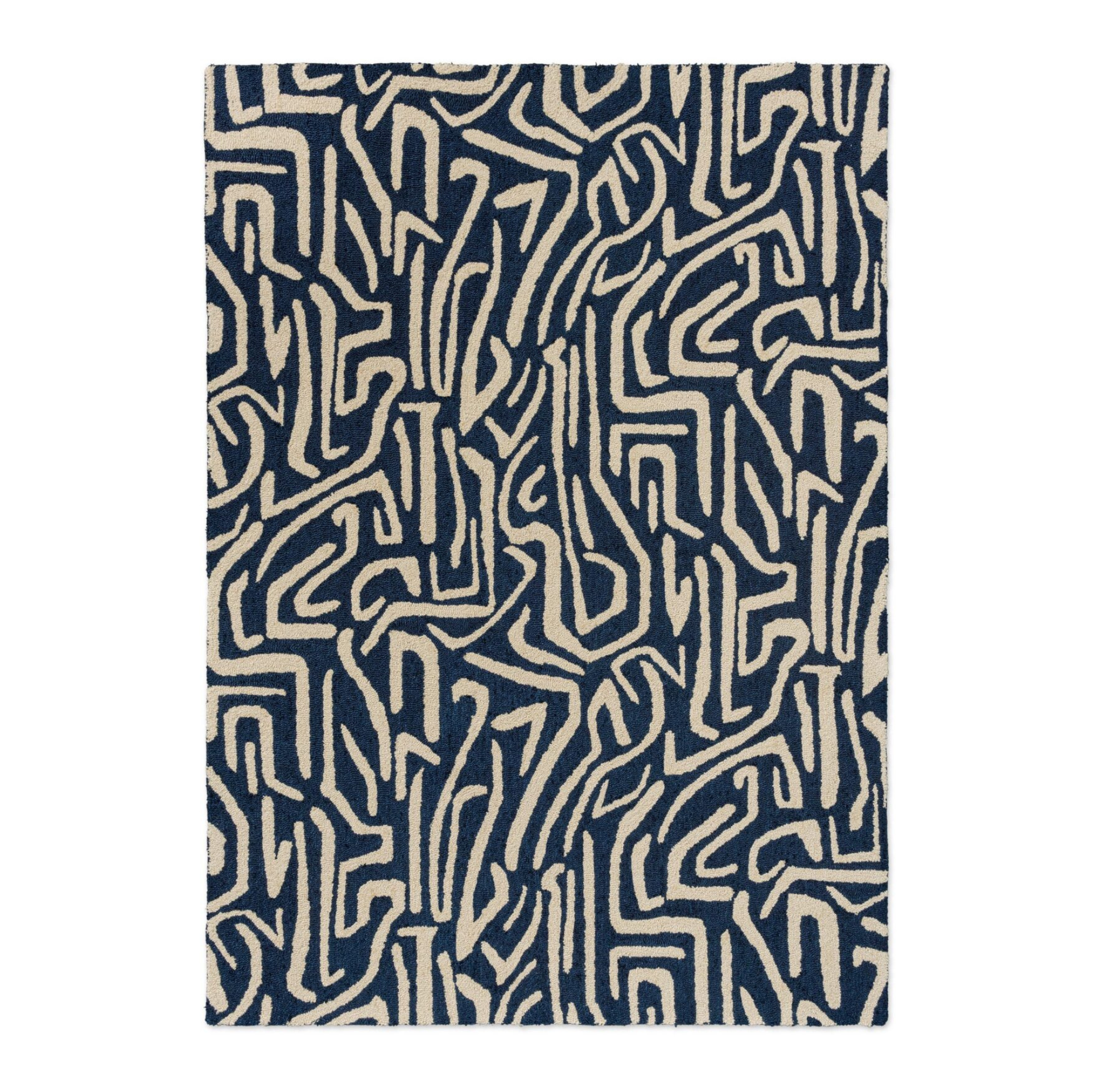 HOUNDSTOOTH WASHED Outdoor-Teppich blau-beige