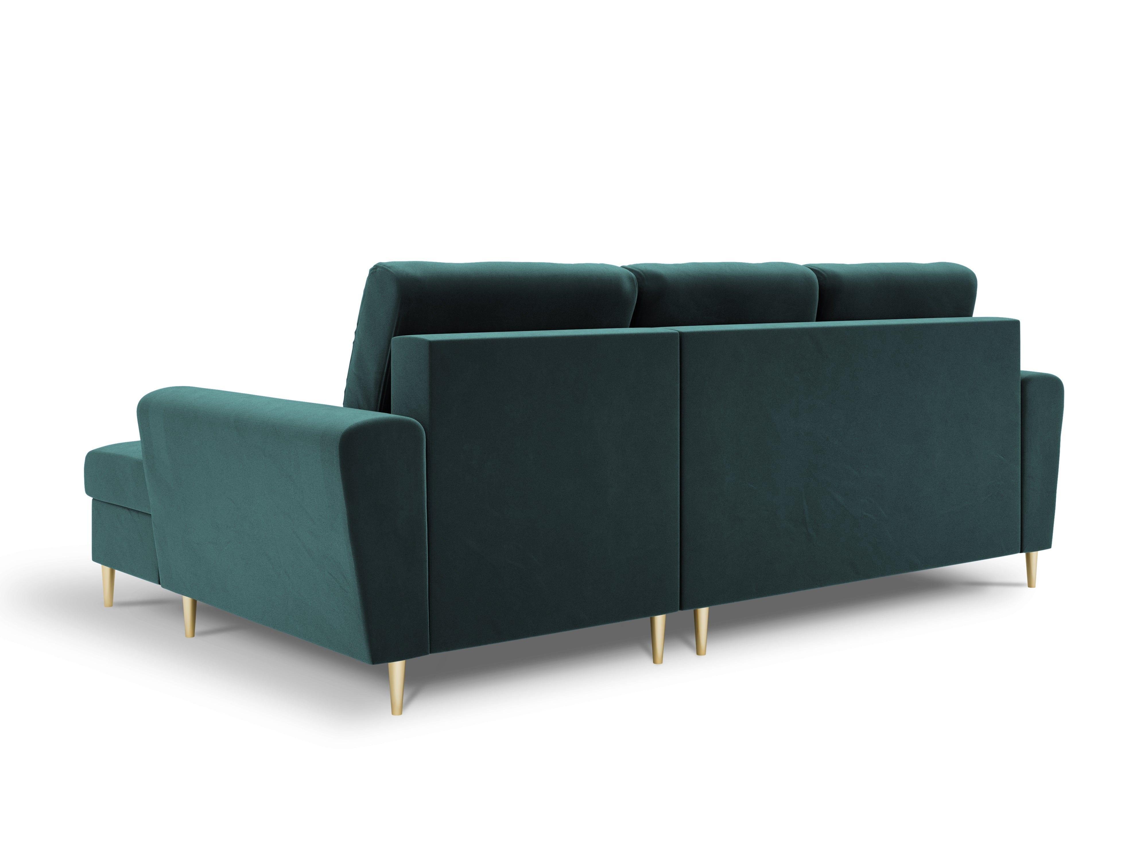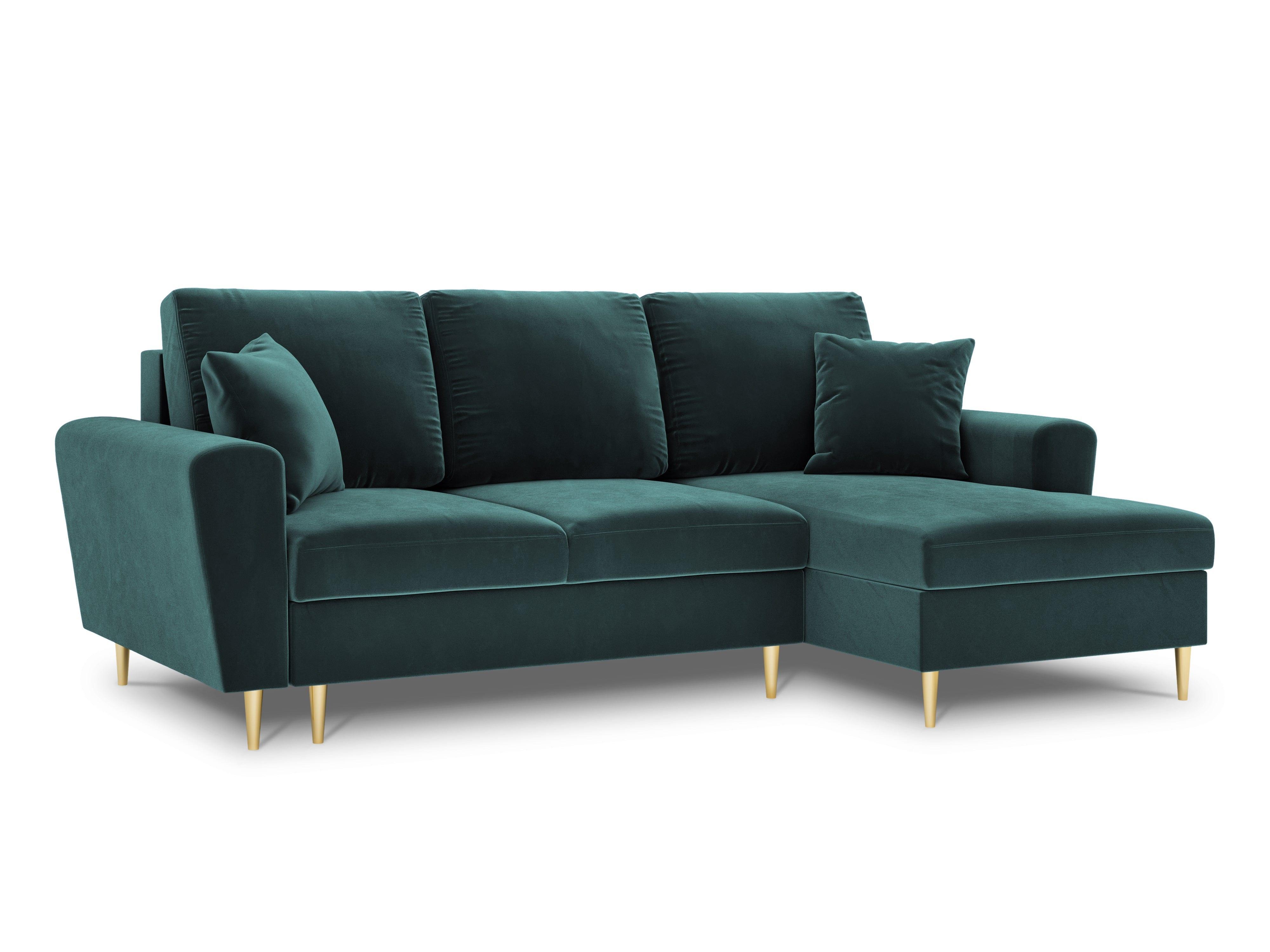 Narożnik prawostronny aksamitny z funkcją spania KYOTO petrol ze złotą podstawą Cosmopolitan Design    Eye on Design