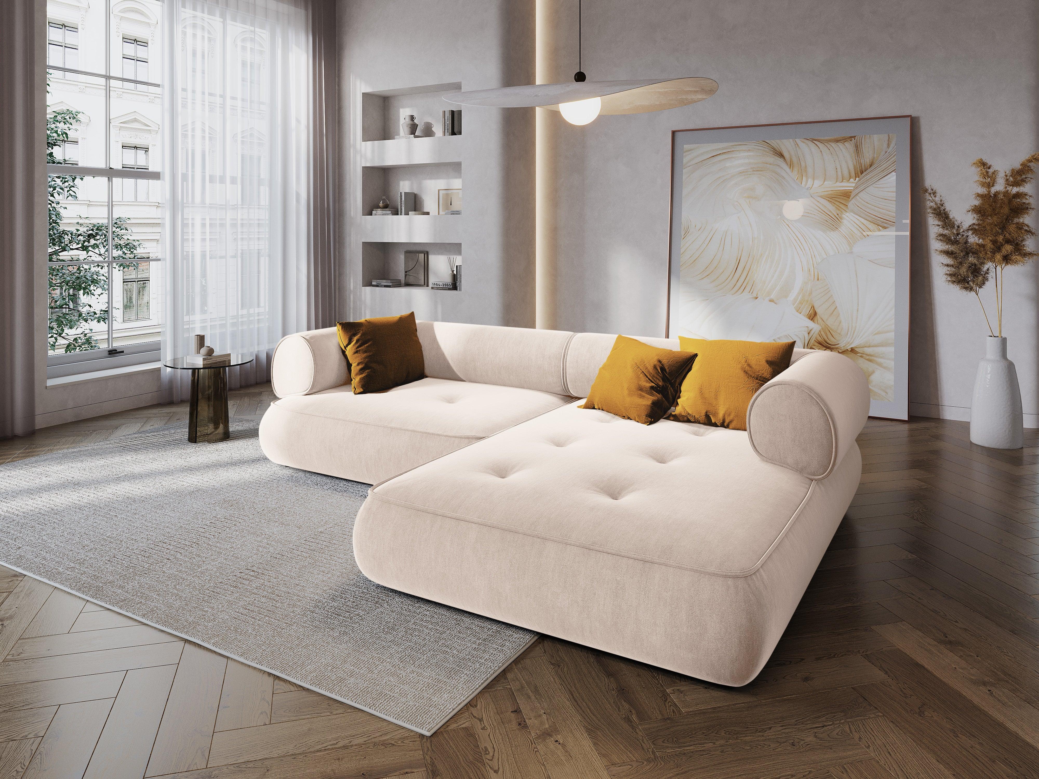 Narożnik w tkaninie szenilowej prawostronny LILY jasnobeżowy Maison Heritage    Eye on Design