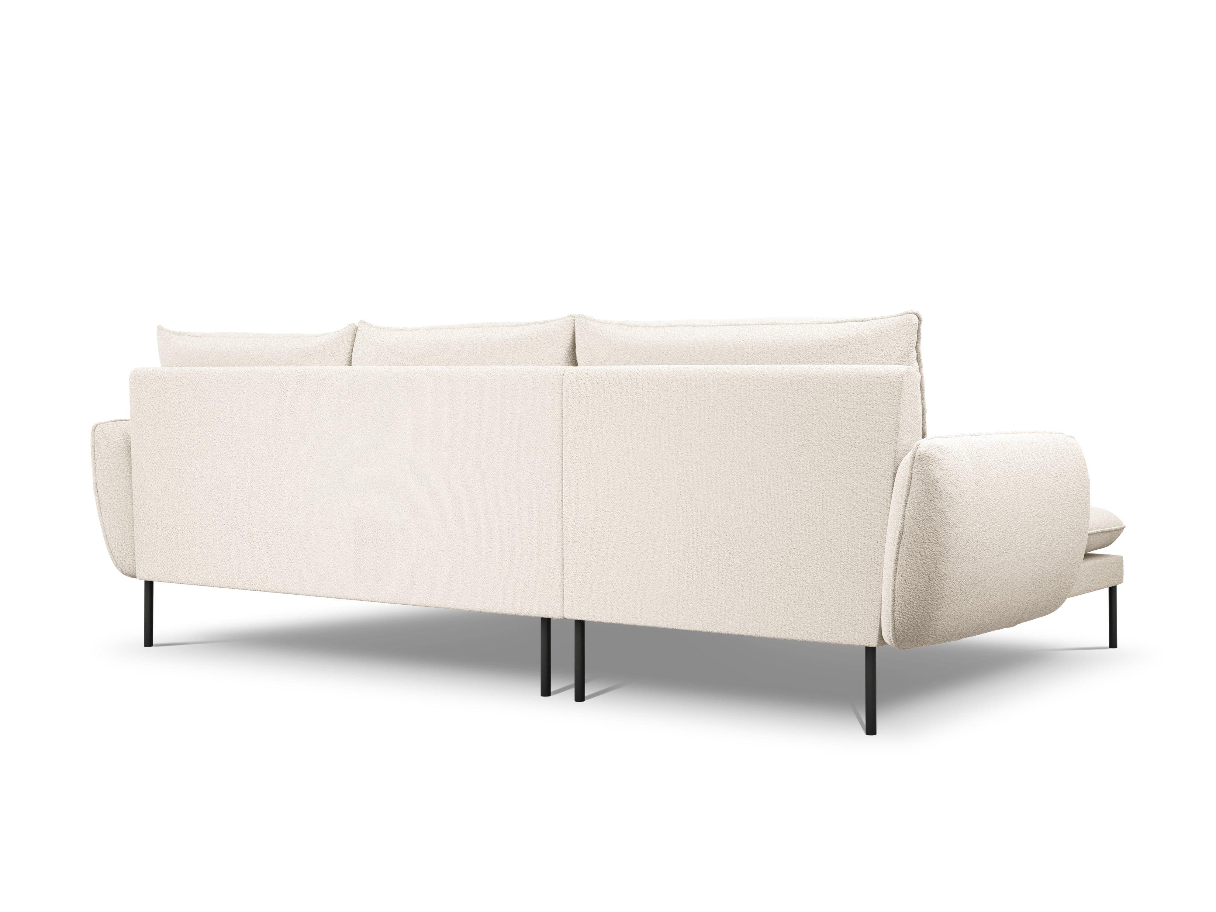 Wysokiej jakości tkanina bouclé charakteryzuje się nie tylko modnym kolorem, ale też dużą wytrzymałością na ścieranie. Sprężyny zig-zag w siedzisku i konstrukcja z litego drewna sosnowego są gwarancją solidności. Narożnik będzie również idealnym uzupełnieniem pozostałych mebli z tej kolekcji Vienna, które zagwarantują idealny wypoczynek dla całej rodziny.
