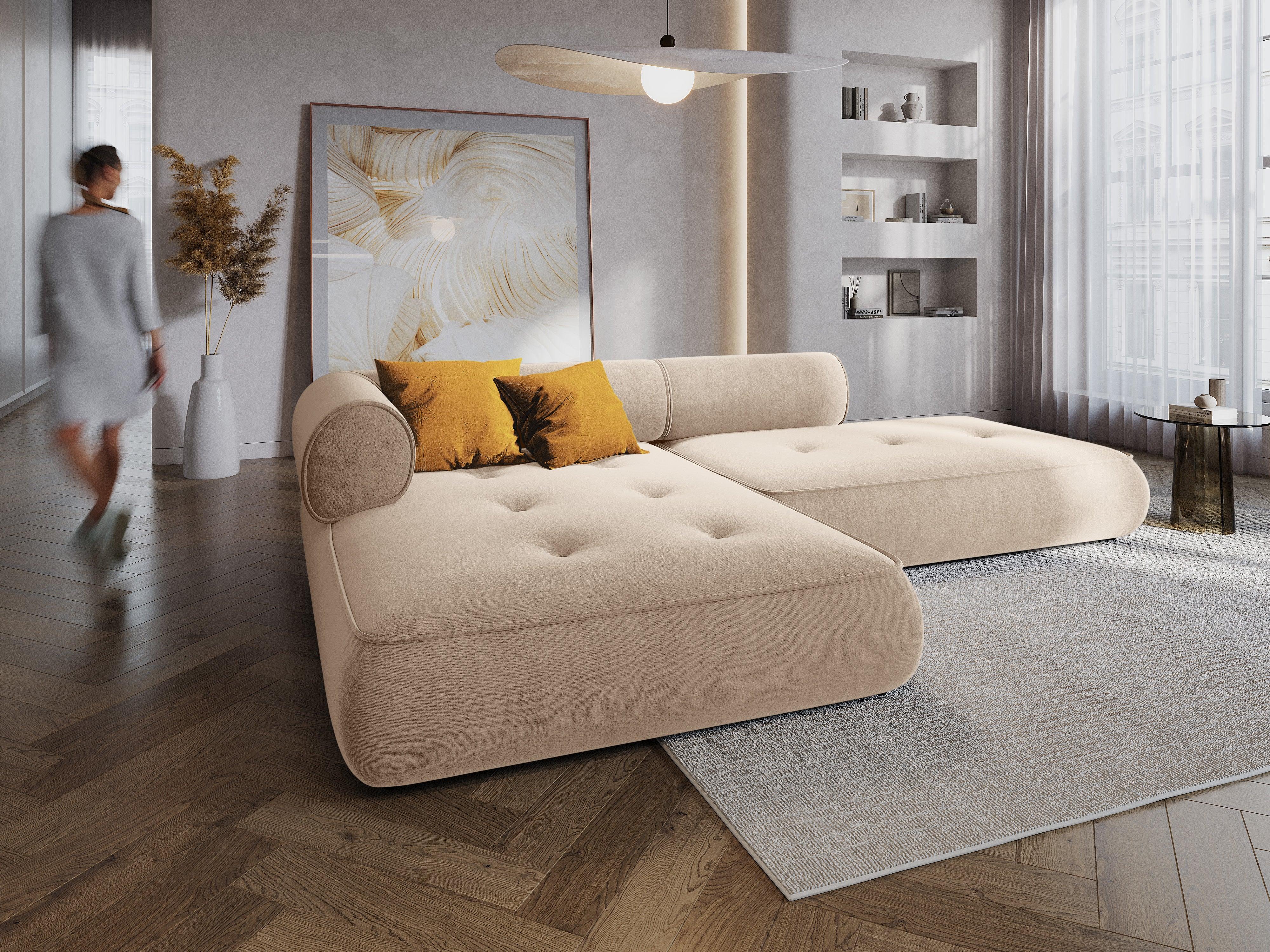 Stilvolle Ecke Lily wird jedem Innenraum zeitlose Eleganz verleihen. Eine einzigartige Form ist das Ergebnis eines modernen Ansatzes für zeitlose Möbelformen. Abgerundete Ränder der Sitze Sie haben eine extrem originelle Form, und die Rückenlehne bieten während der Pause ausreichend Komfort. Die Polsterung aus schwarzem Stoff ist nicht nur praktisch, sondern auch angenehm angenehm.
