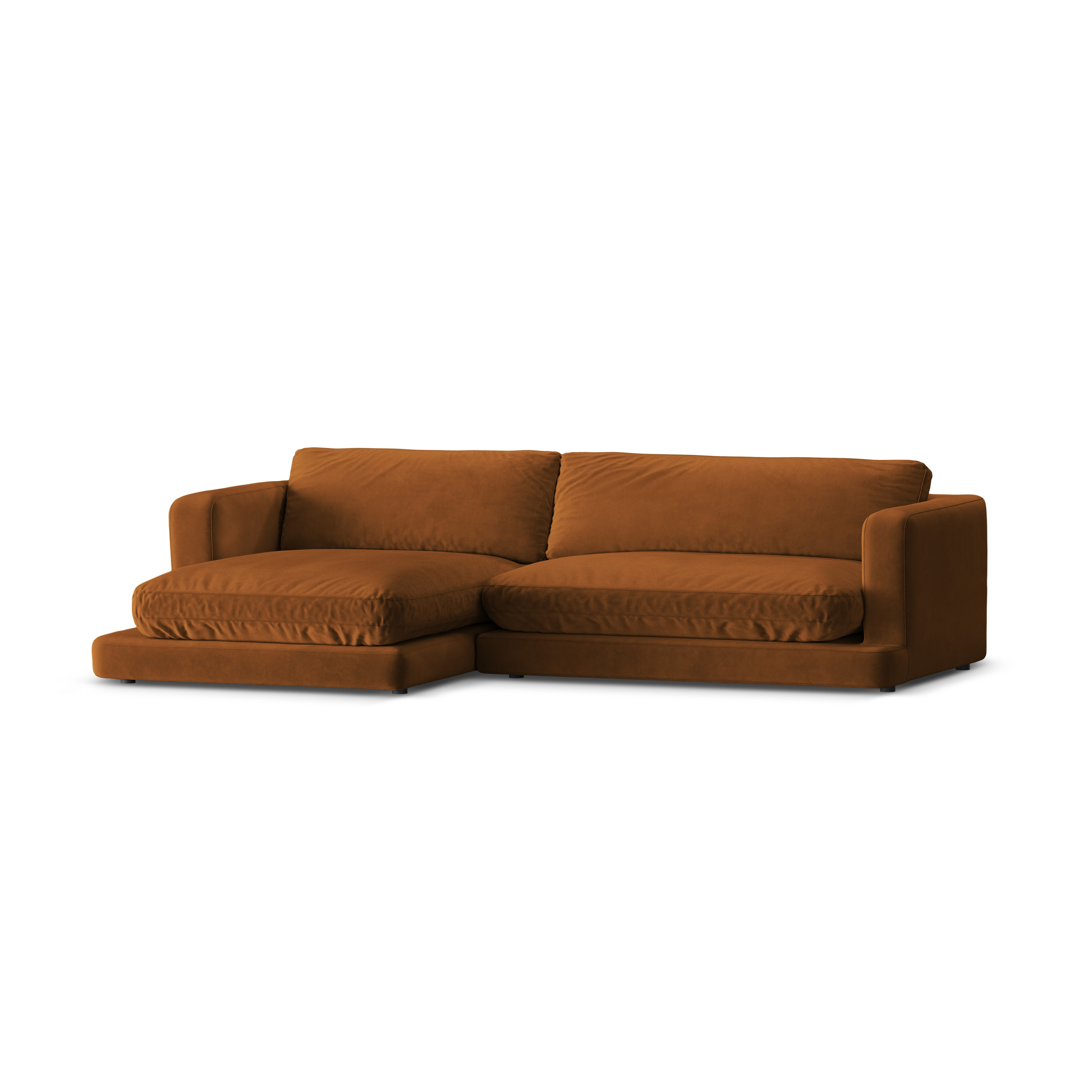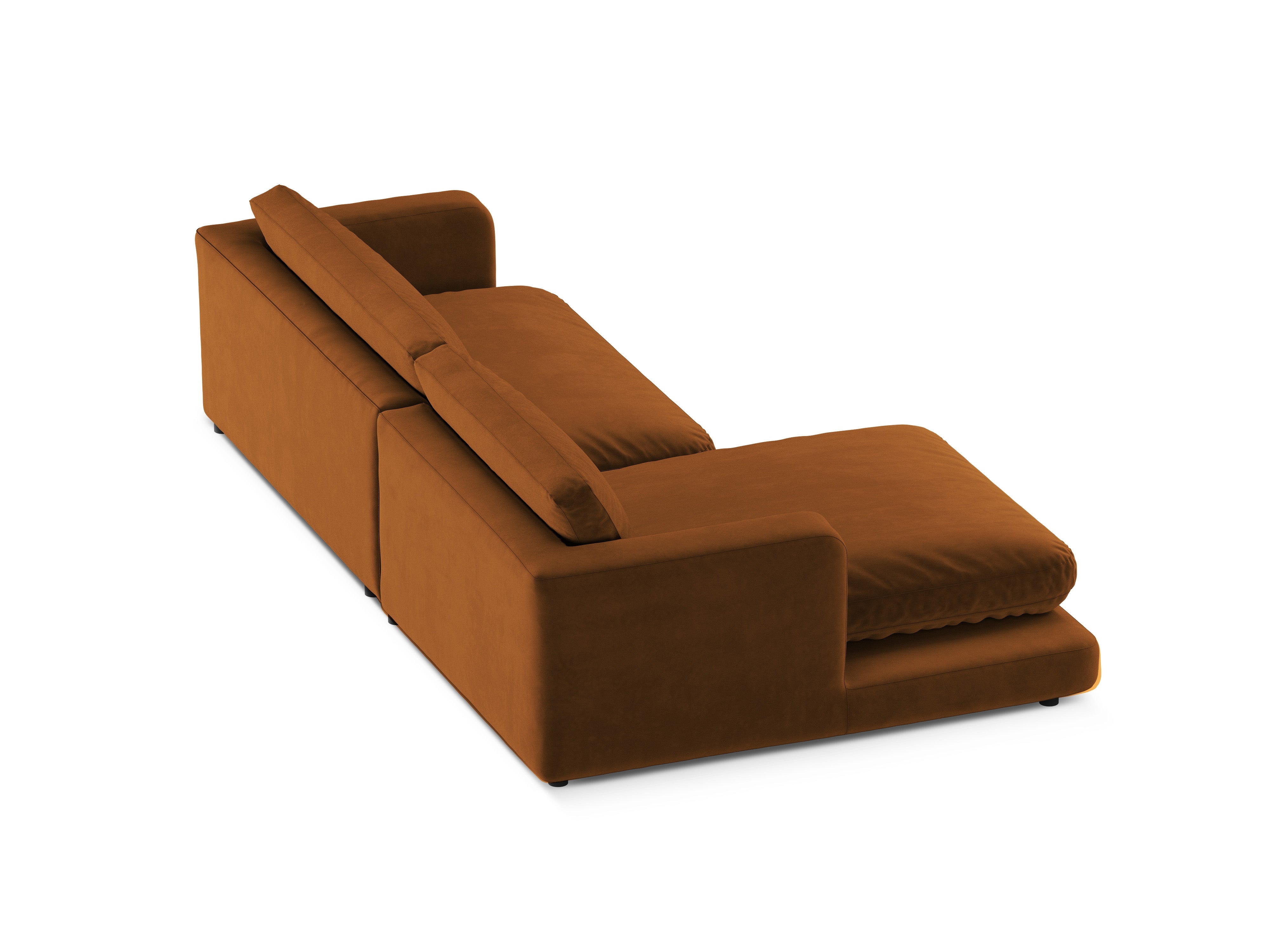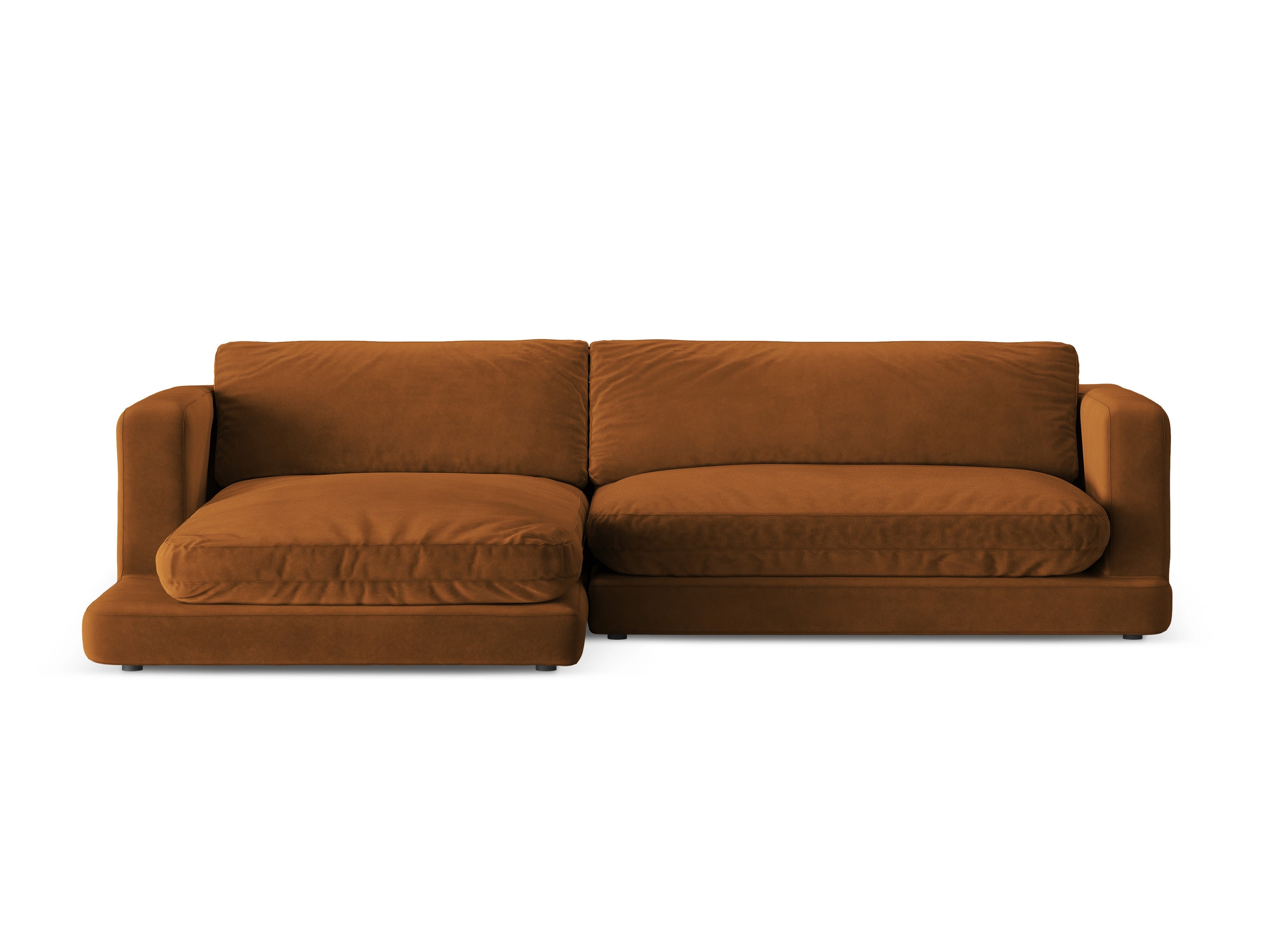 Samt-Ecksofa Daphne ist ein elegantes und komfortables Möbelstück, das jedem Wohnzimmer Charakter verleiht. Seine weichen Kissen, die breite Sitzfläche und der subtil schimmernde Stoff schaffen einen Raum, der ideal für die tägliche Entspannung ist. Dank seiner Konstruktion und der sorgfältigen Verarbeitung in Europa begeistert das Ecksofa Daphne mit Langlebigkeit und präsentiert gleichzeitig einen zeitlosen, modernen Stil.
