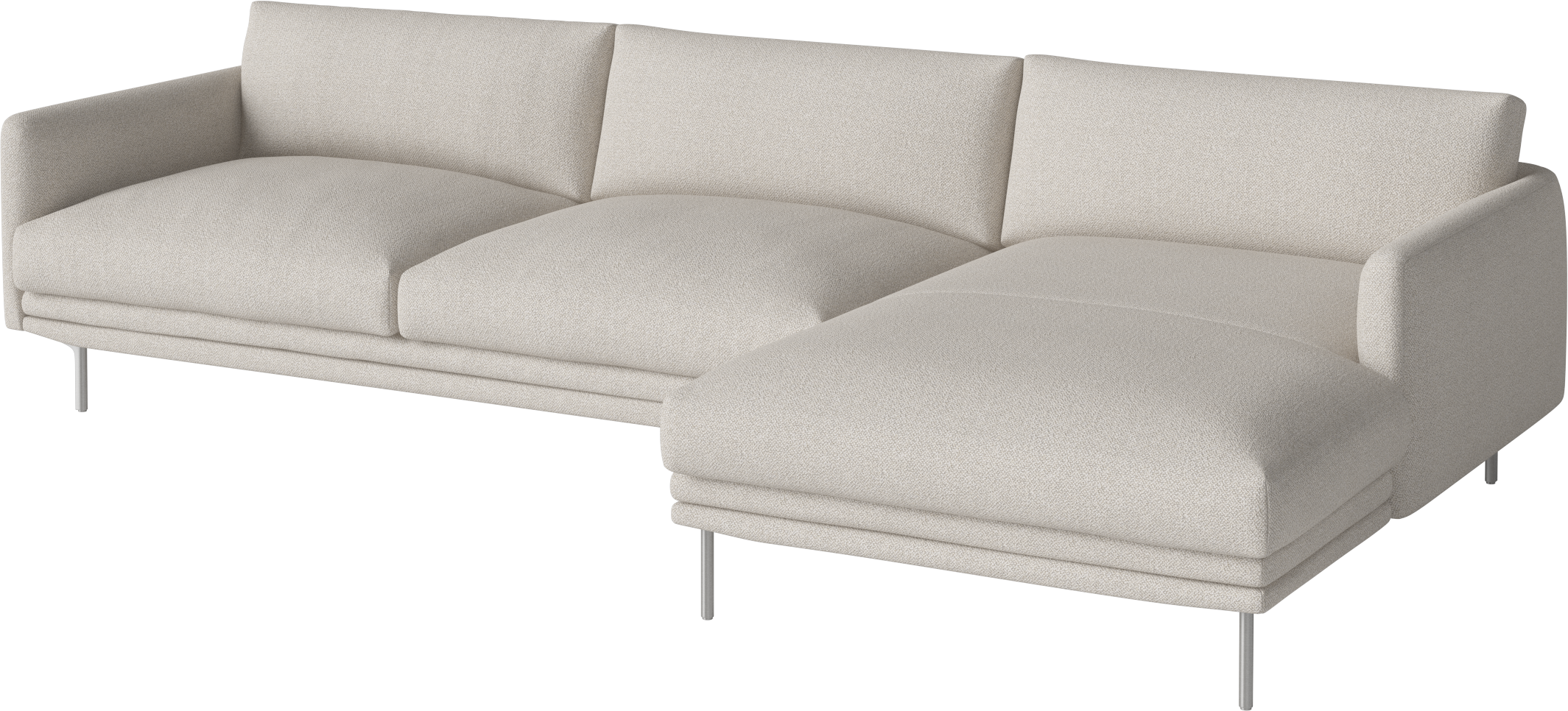 Ecke Lomi ist die Essenz des skandinavischen Minimalismus in Kombination mit der Bequemlichkeit der Salonruhe, die von Meike Harde entworfen wurde. Dank eleganter Linien, subtilen Details und Kissen, die auf der Grundlage von Springs ohne Zack platziert sind, bietet es außergewöhnlichen Komfort und Stil. Eine leichte Struktur mit schrägen Stahlbeinen verleiht ihm einen modernen, minimalistischen Charakter. Das Innere der Ecke besteht aus zertifiziertem FSC® -Holz, das den ökologischen Ansatz für das Design und die Haltbarkeit des Produkts betont.