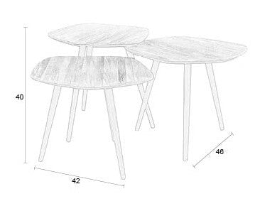Ein Satz von 3 Kaffeetischen Cuties ist eine elegante und praktische Lösung für Ihr Wohnzimmer oder Wohnzimmer. Diese Tische bestehen aus hochwertigem Holz und Eisen und garantieren viele Jahre Zuverlässigkeit und Haltbarkeit. Die harmonische Kombination aus brauner Holzfarbe mit zarten Elementen in Schwarz bringt dem Innenraum eine Note des modernen Stils, während er Wärme und Gemütlichkeit aufrechterhält. Das Tabellensatz Es ist eine ideale Wahl für diejenigen, die elegantes Design und Funktionalität in einem schätzen.
