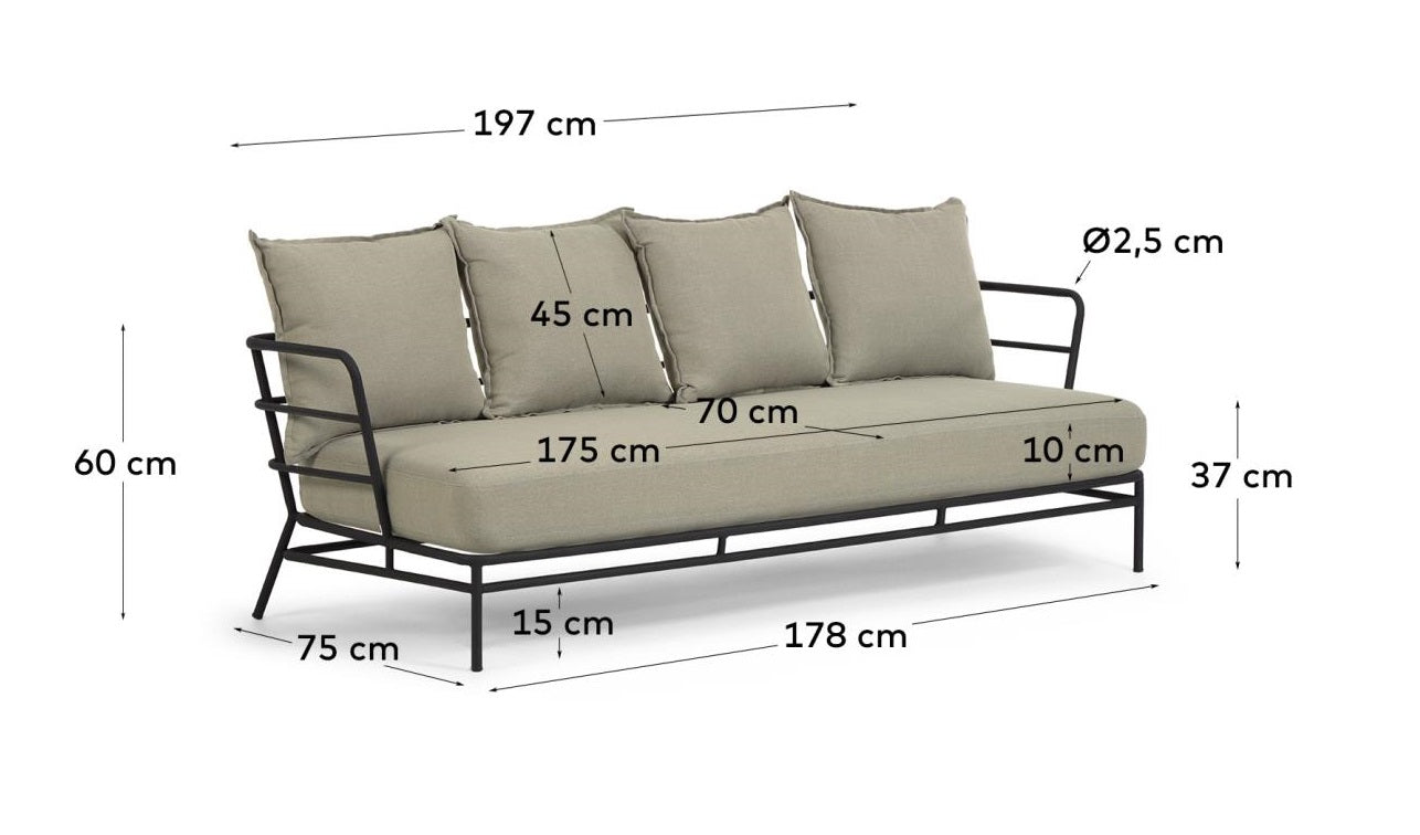 Sofa zewnętrzna 3-osobowa MARELUZ beżowy z czarną podstawą La Forma    Eye on Design