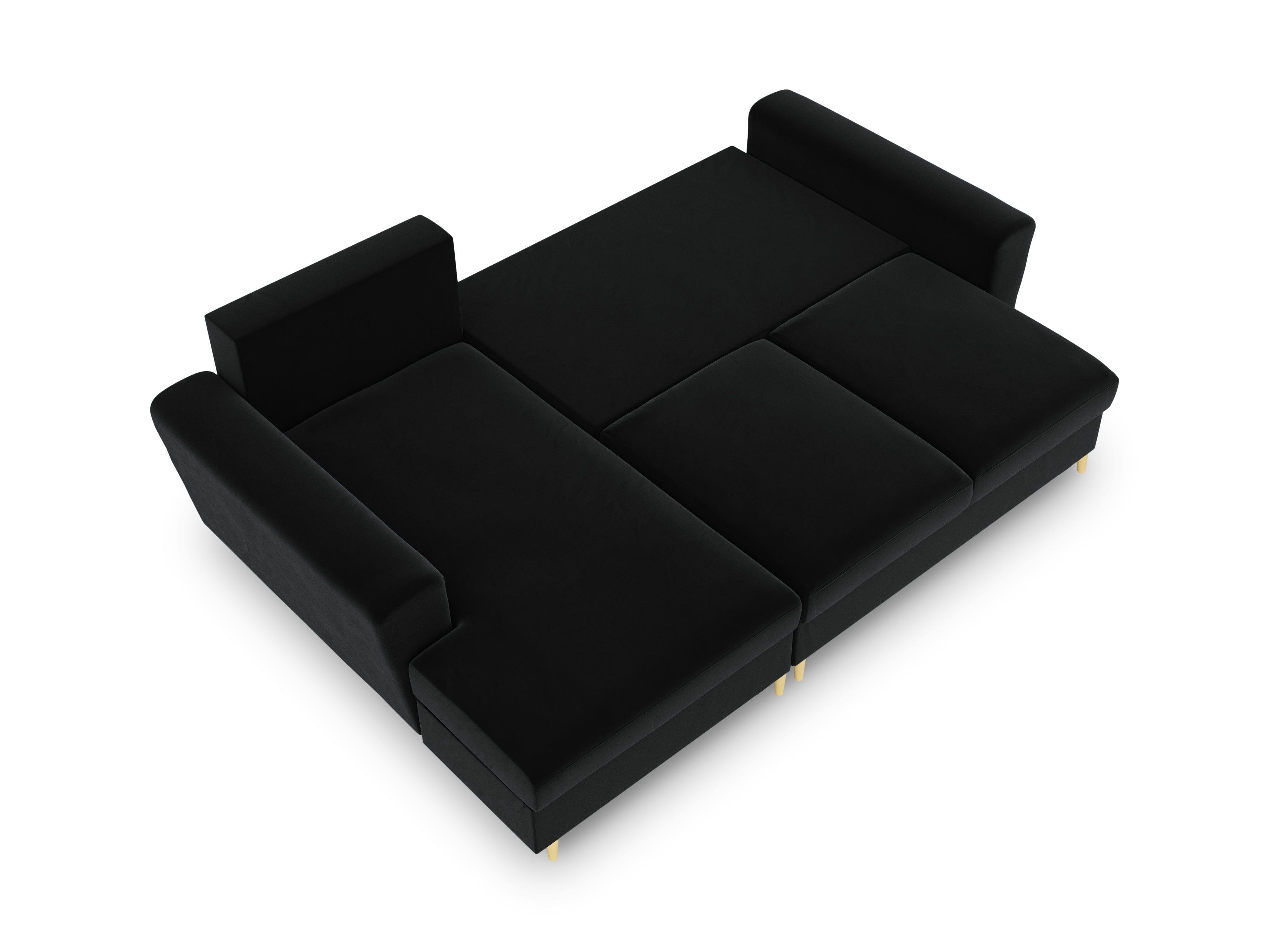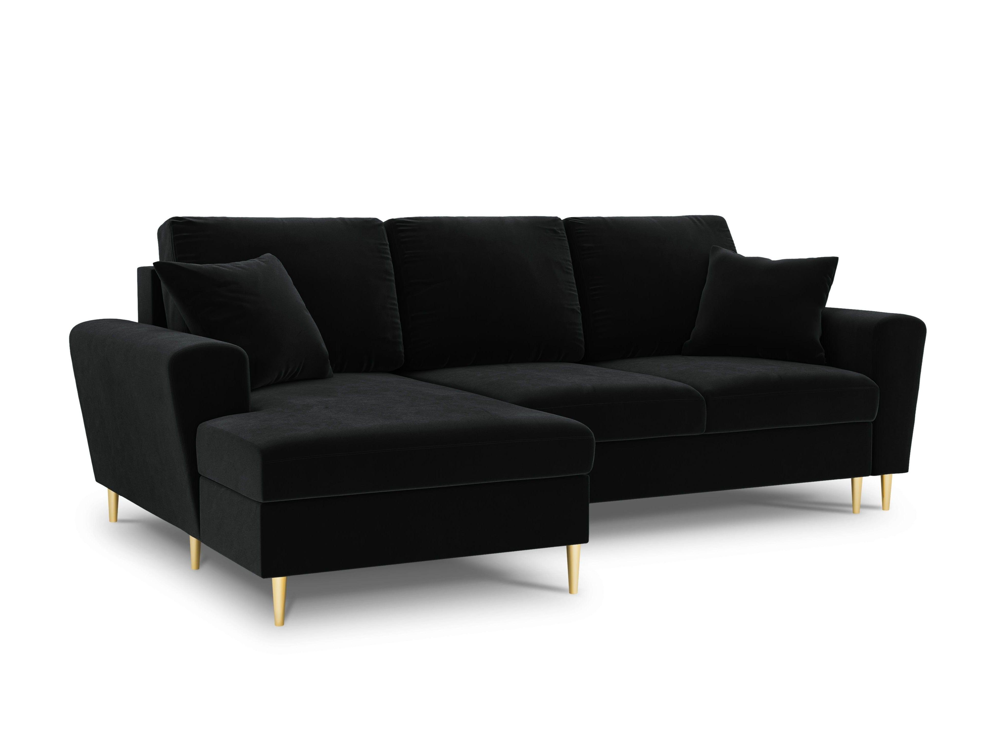 Narożnik lewostronny aksamitny z funkcją spania KYOTO czarny ze złotą podstawą Cosmopolitan Design    Eye on Design