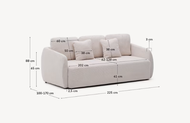 Sofa Laira zeichnet sich durch hochwertige Polsterung aus einem losen Gewebe aus, was eine außergewöhnliche Weichheit gegenüber der Berührung und der hohen Abriebfestigkeit gewährleistet. Dank des Y-Open-Systems kann das Sofa dank des synchronisierten Öffnungsmechanismus leicht und schnell in ein bequemes Bett mit 150 x 190 cm umgewandelt werden. Nach dem Entfalten kann es auch als kontinuierlicher Chaiselong fungieren und zusätzlichen Komfort bieten.