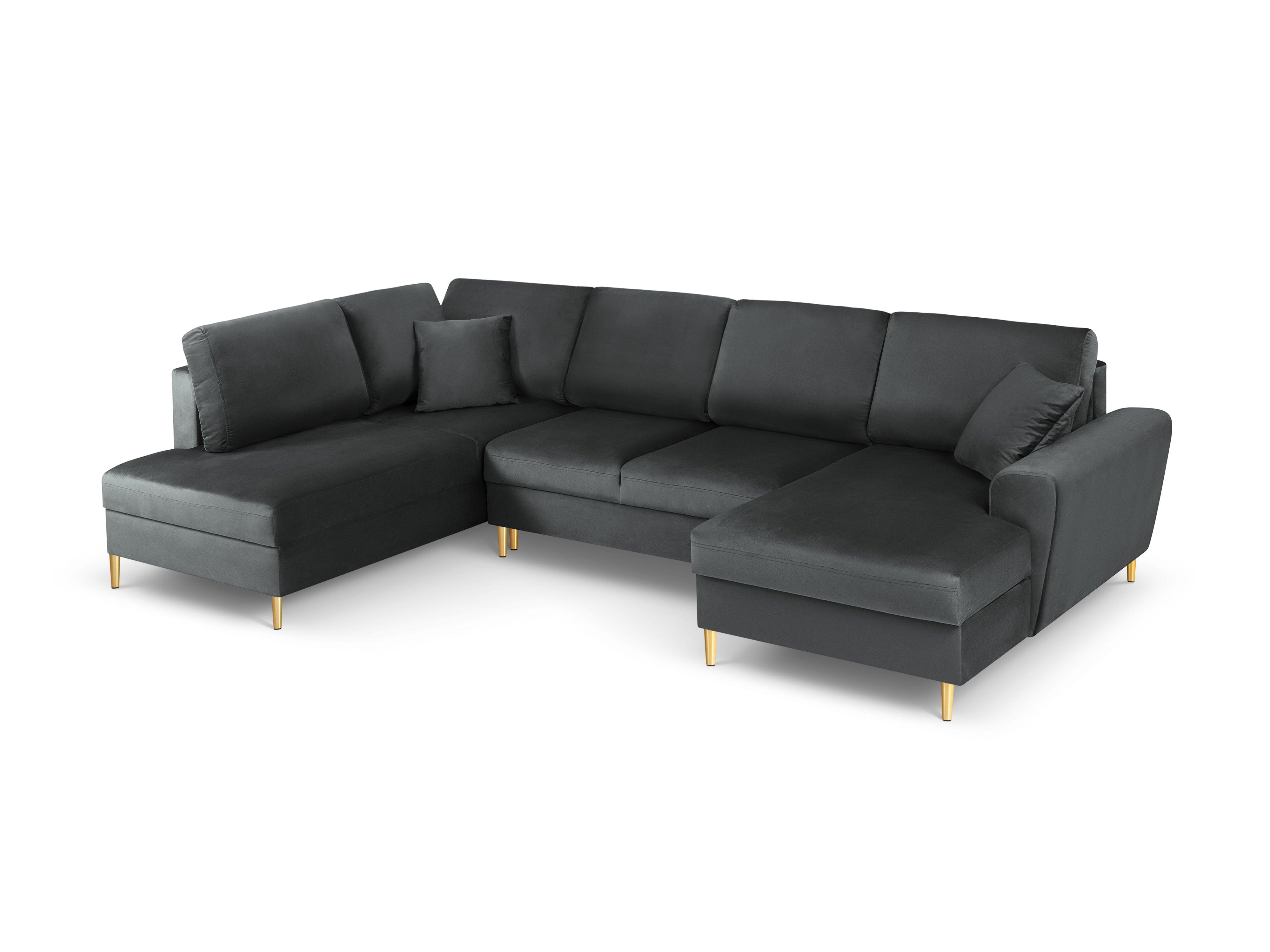 Narożnik lewostronny aksamitny panoramiczny z funkcją spania KYOTO ciemnoszary ze złotą podstawą Cosmopolitan Design    Eye on Design