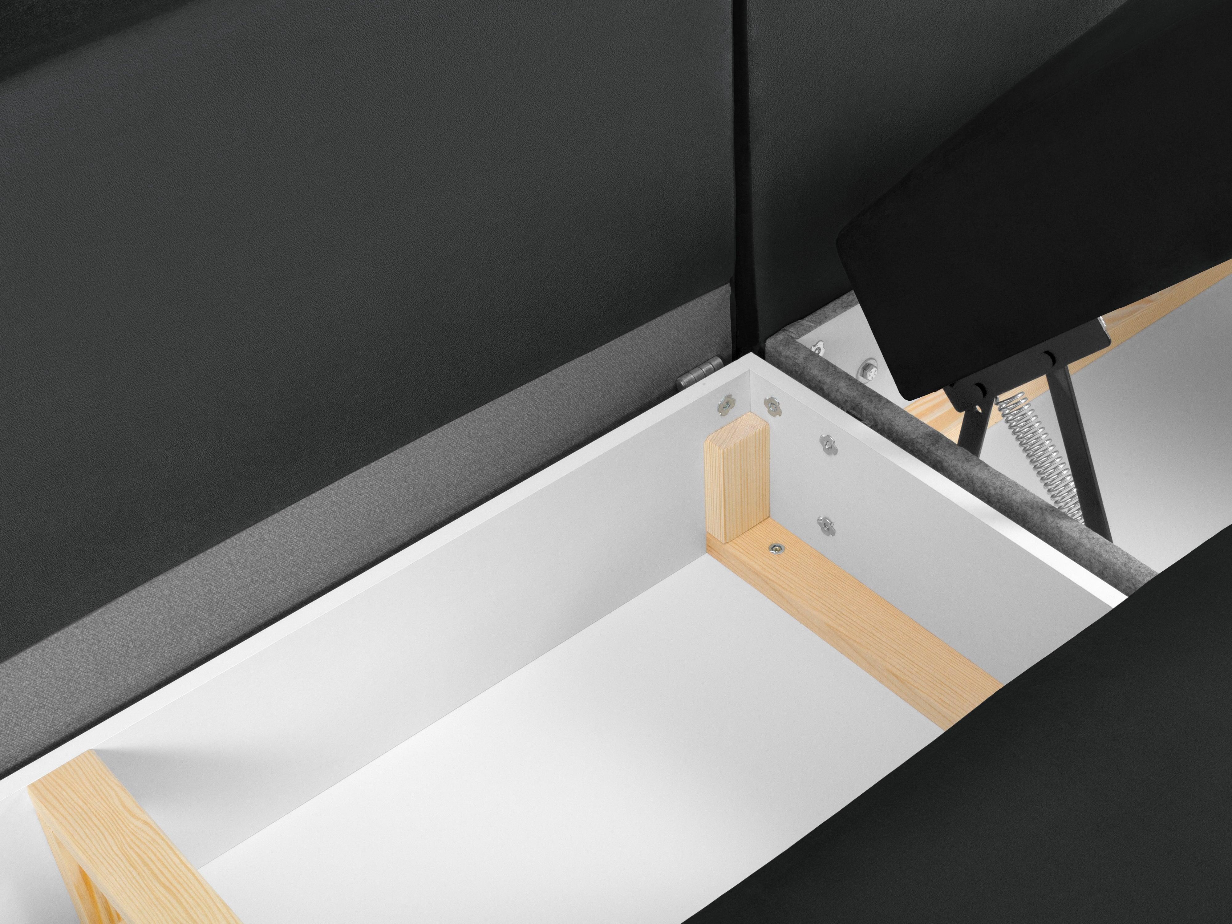 Narożnik lewostronny aksamitny panoramiczny z funkcją spania KYOTO ciemnoszary z czarną podstawą Cosmopolitan Design    Eye on Design