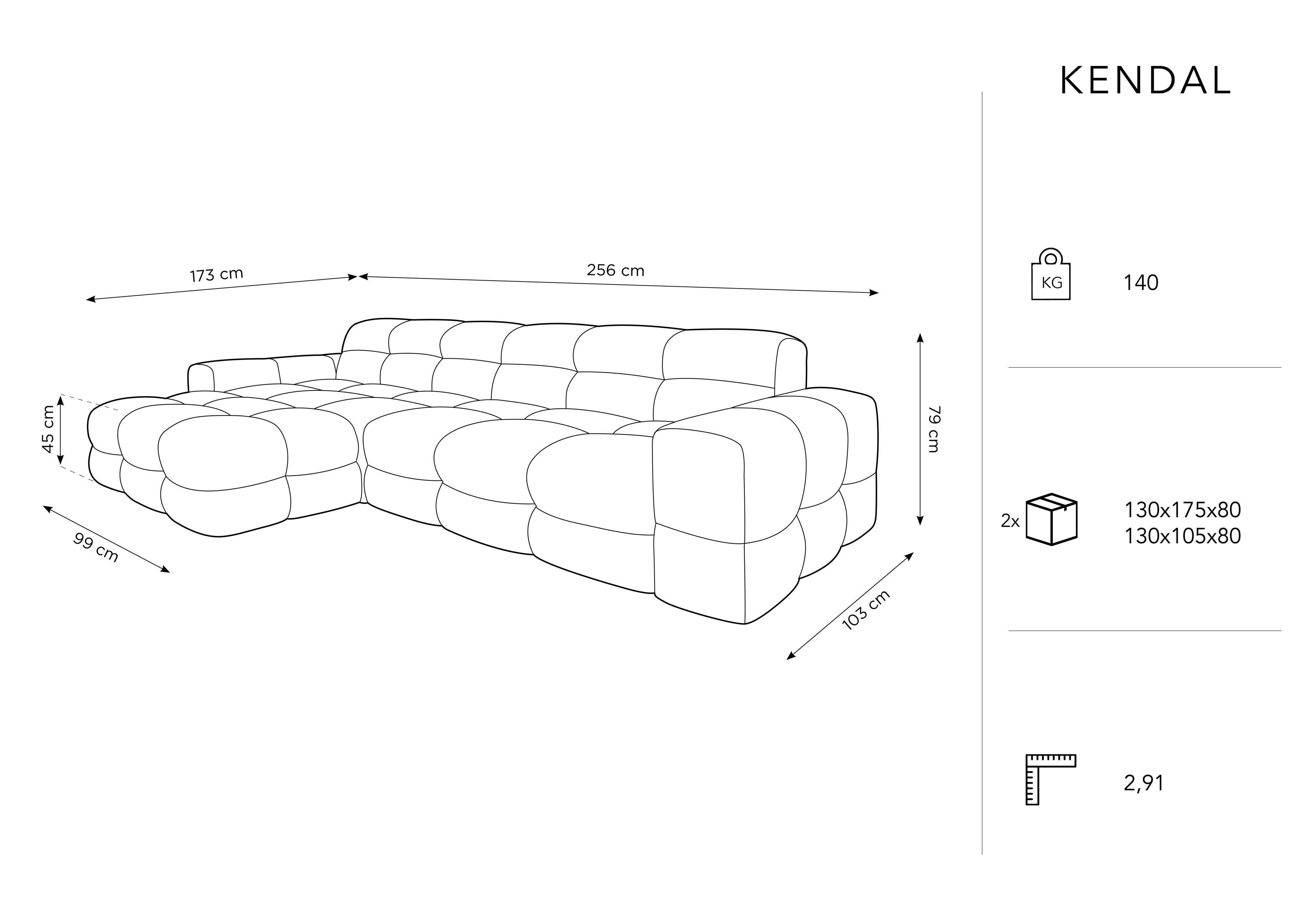 Linkshänder 4-Sitzer Kendal Grey Ecke