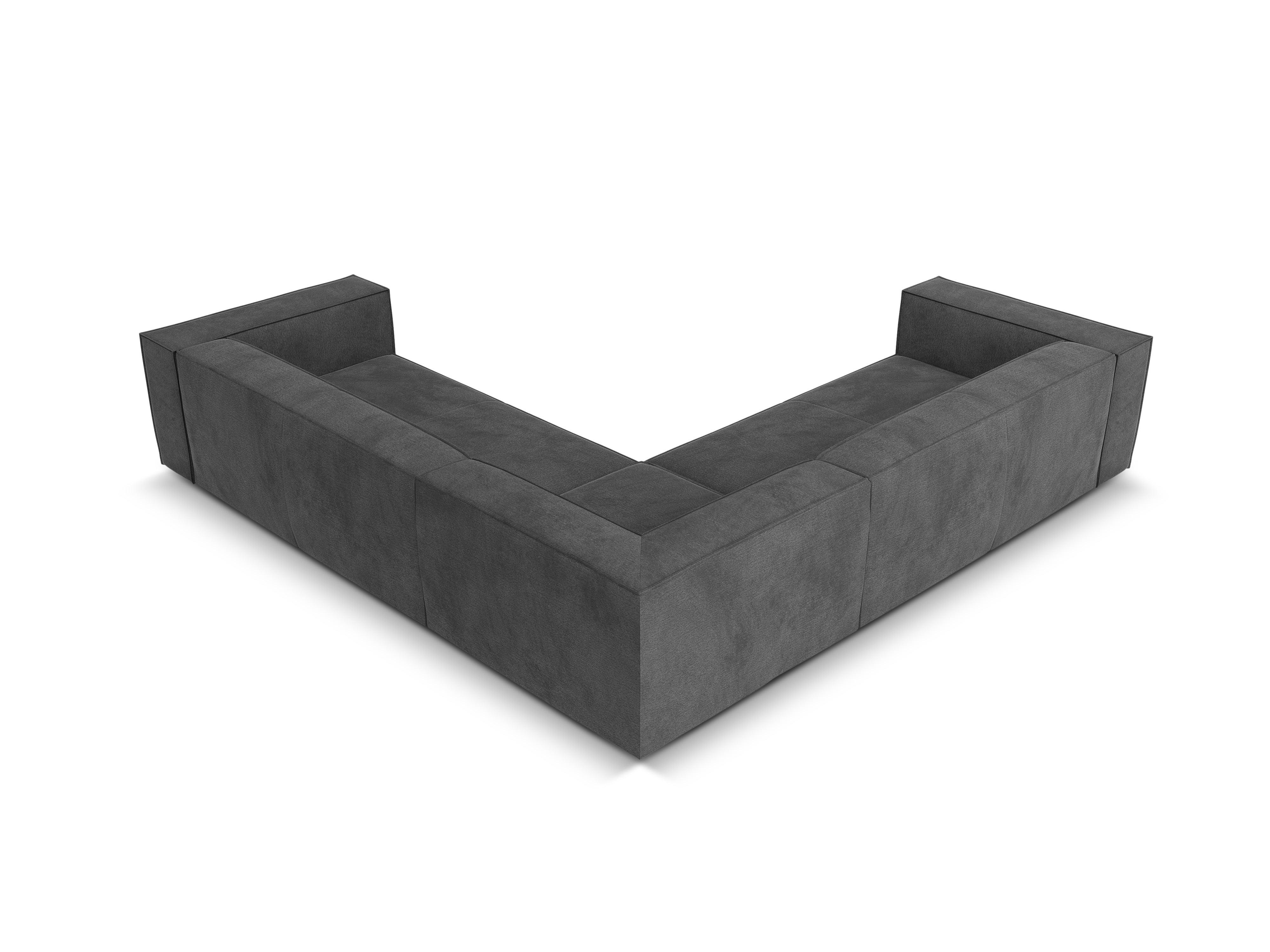 Eine Ecke für fünf Personen Madame mit einem ausgeprägten Charakter und einem eleganten Finish ist eine gute Wahl für ein modernes Wohnzimmer. Der tiefe Sitz eignet sich sowohl für soziale Versammlungen als auch bis zu einem Moment der Entspannung nach einem harten Tag. Sie können bequem in freien Positionen ruhen. Mit einer niedrigen Figur, breiten Armlehnen und Rücken erzeugt es einen gemütlichen Block.